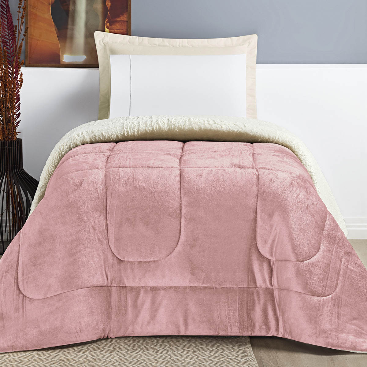 Coberdrom Apollo Solteiro Sherpa Manta Flannel Toque Lã de Carneiro - Rosa