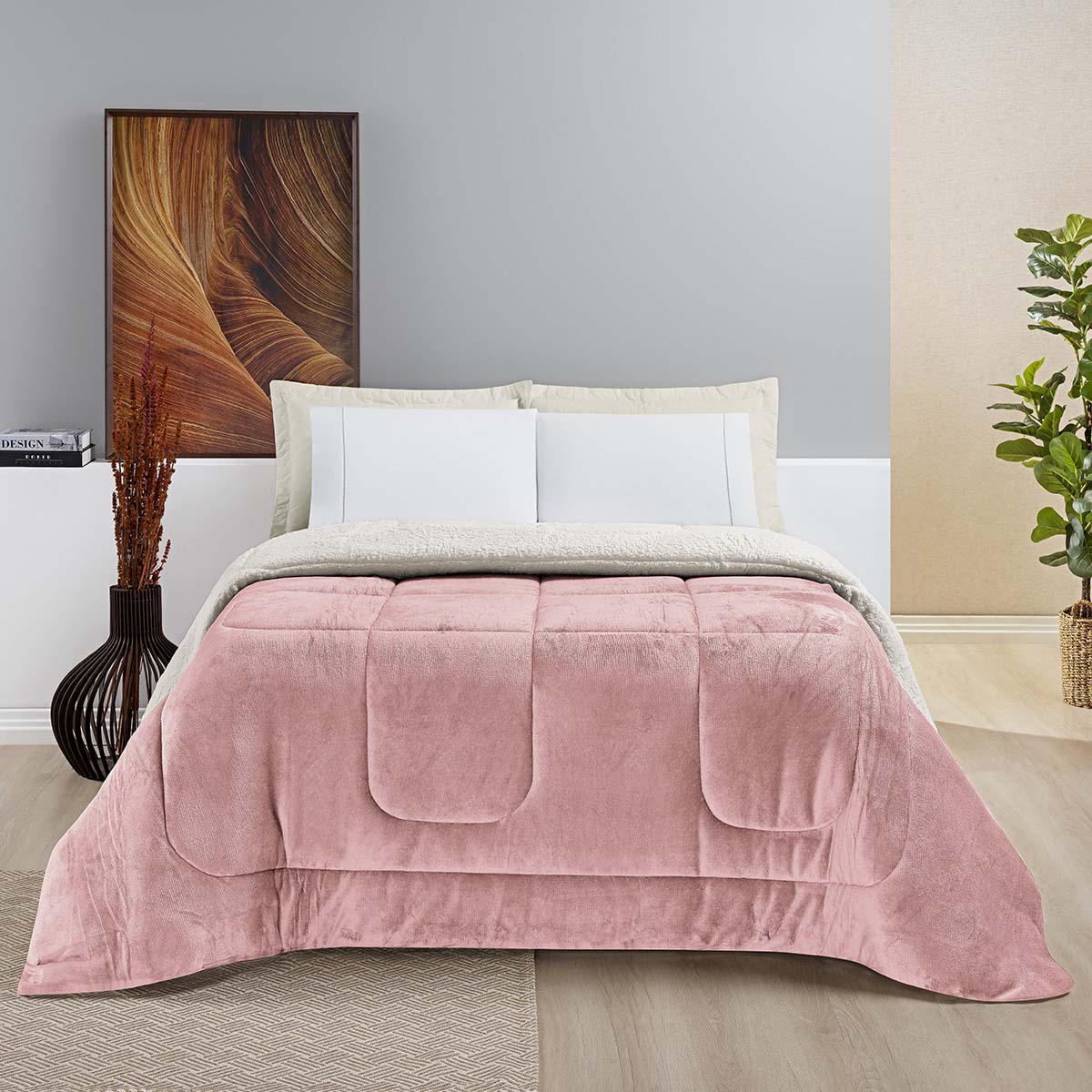 Coberdrom Apollo Queen Sherpa Pele de Carneiro + Manta Flannel - Rosa