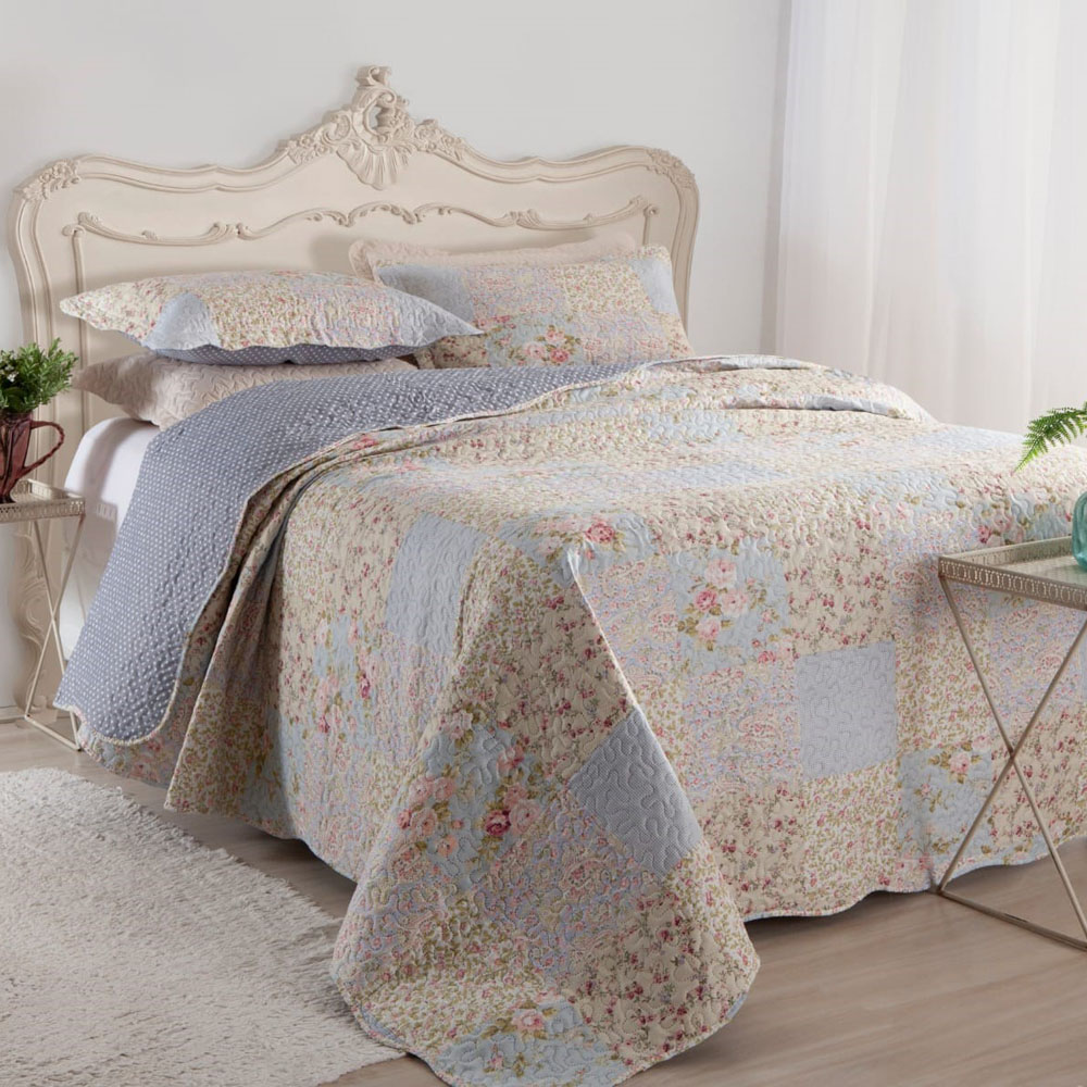 Kit Cobre Leito Colcha Mix Queen Estampado Dupla Face Floral 3 Peças - Beth