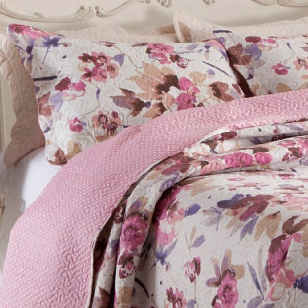 Kit Cobre Leito Colcha Mix Queen Estampado Dupla Face Floral 3 Peças - Damares