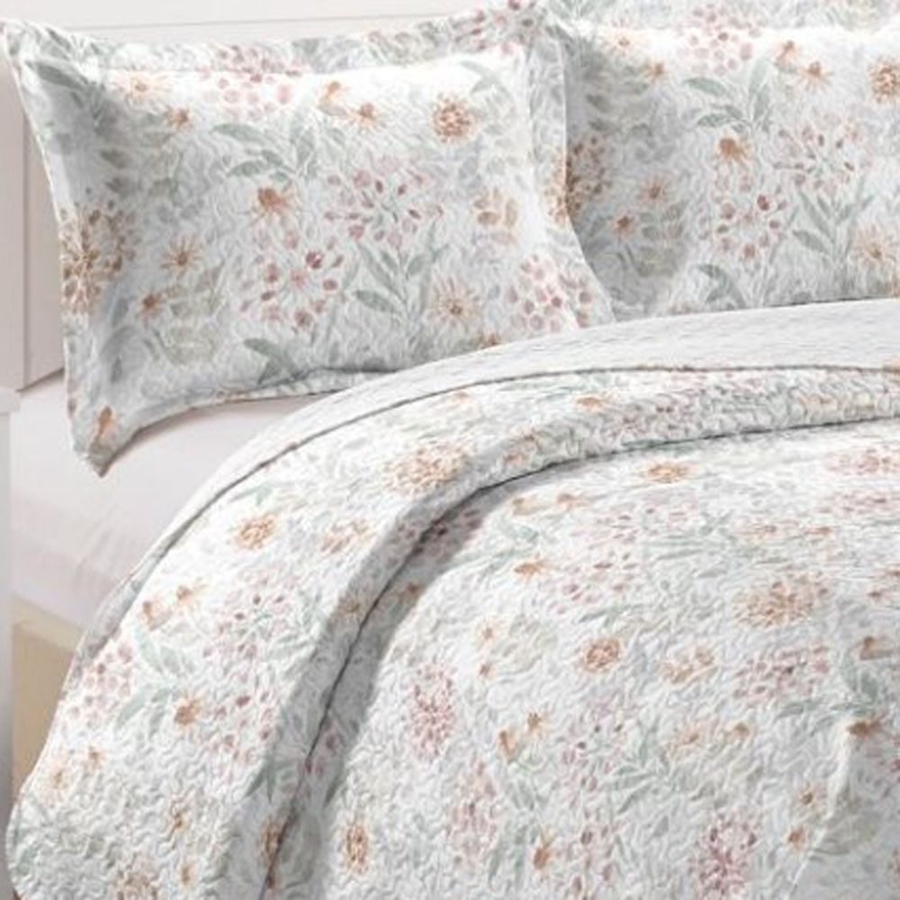 Kit Cobre Leito Colcha Mix Queen Estampado Dupla Face Floral 3 Peças - Joice