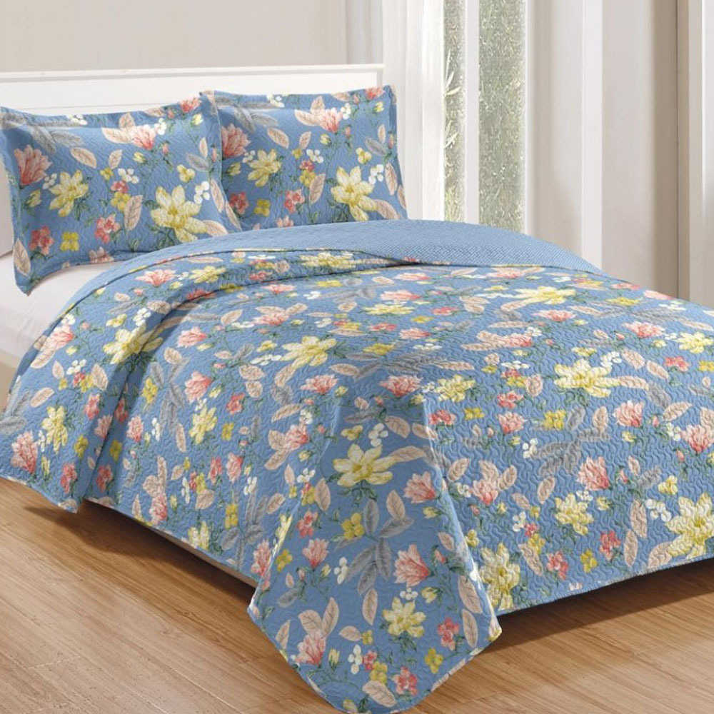Kit Cobre Leito Colcha Mix Queen Estampado Dupla Face Floral 3 Peças - Leona