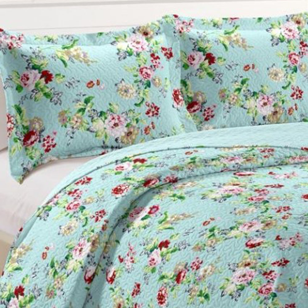 Kit Cobre Leito Colcha Mix Queen Estampado Dupla Face Floral 3 Peças - Luiza