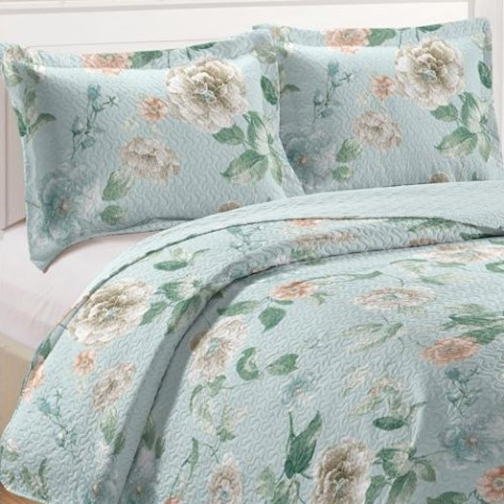 Kit Cobre Leito Colcha Mix Queen Estampado Dupla Face Floral 3 Peças - Marli