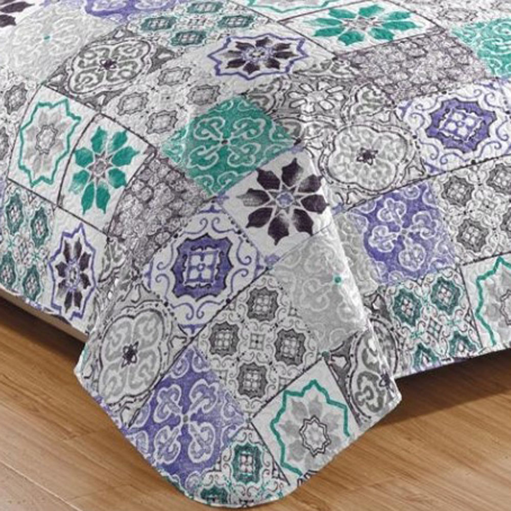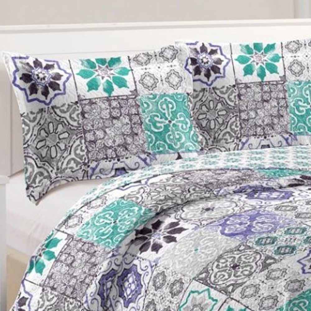 Kit Cobre Leito Colcha Mix Queen Estampado Dupla Face Floral 3 Peças - Thaís