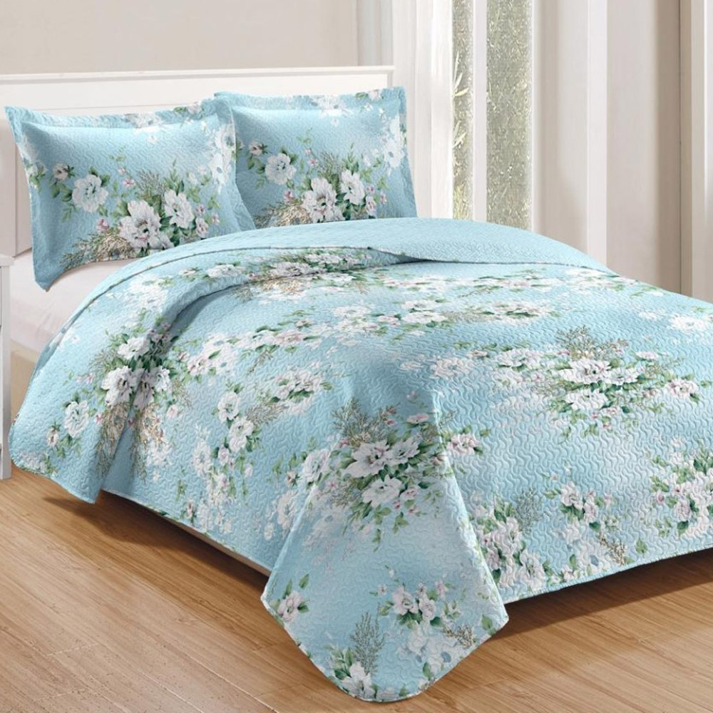 Kit Cobre Leito Colcha Mix Queen Estampado Dupla Face Floral 3 Peças - Yasmin