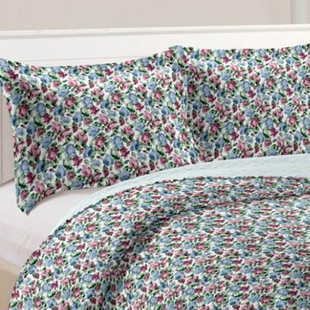 Kit Cobre Leito Colcha Mix King Estampado Dupla Face Floral 3 Peças - Clarisse