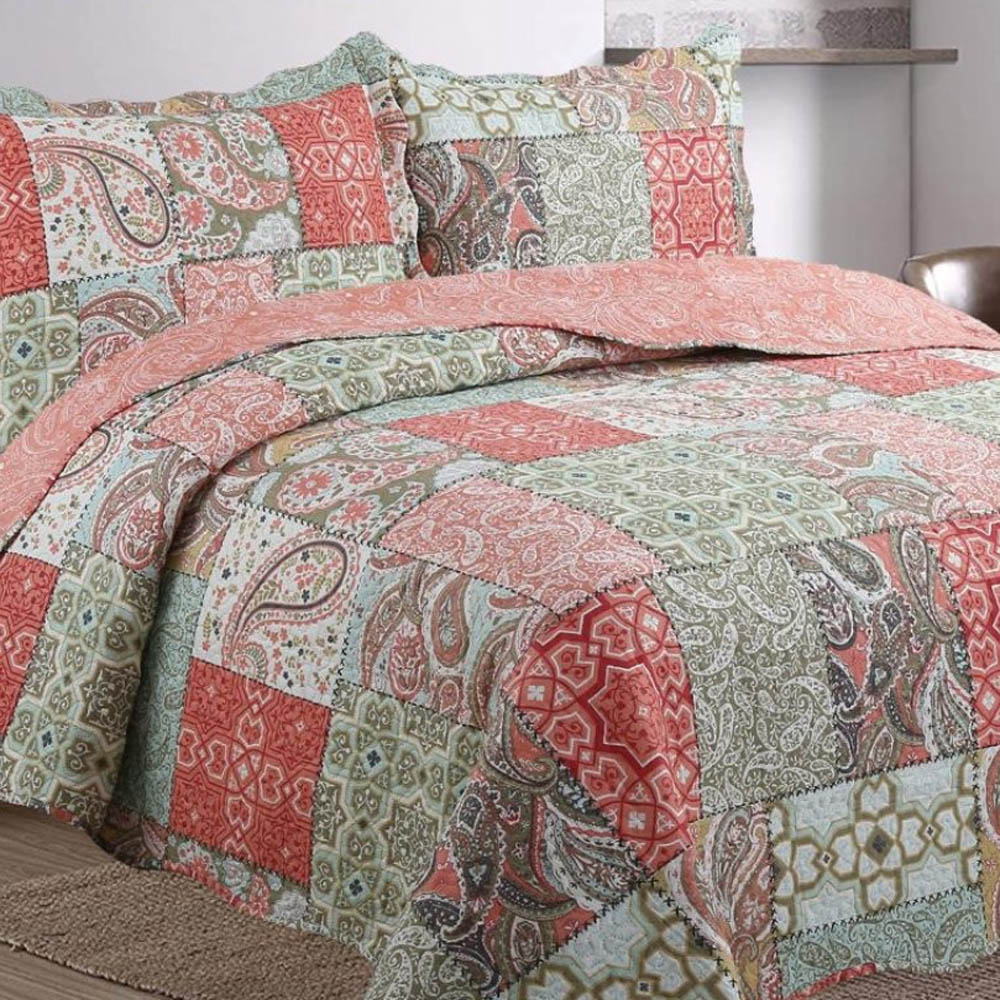 Kit Cobre Leito Colcha Mix King Estampado Dupla Face Floral 3 Peças - Eduarda