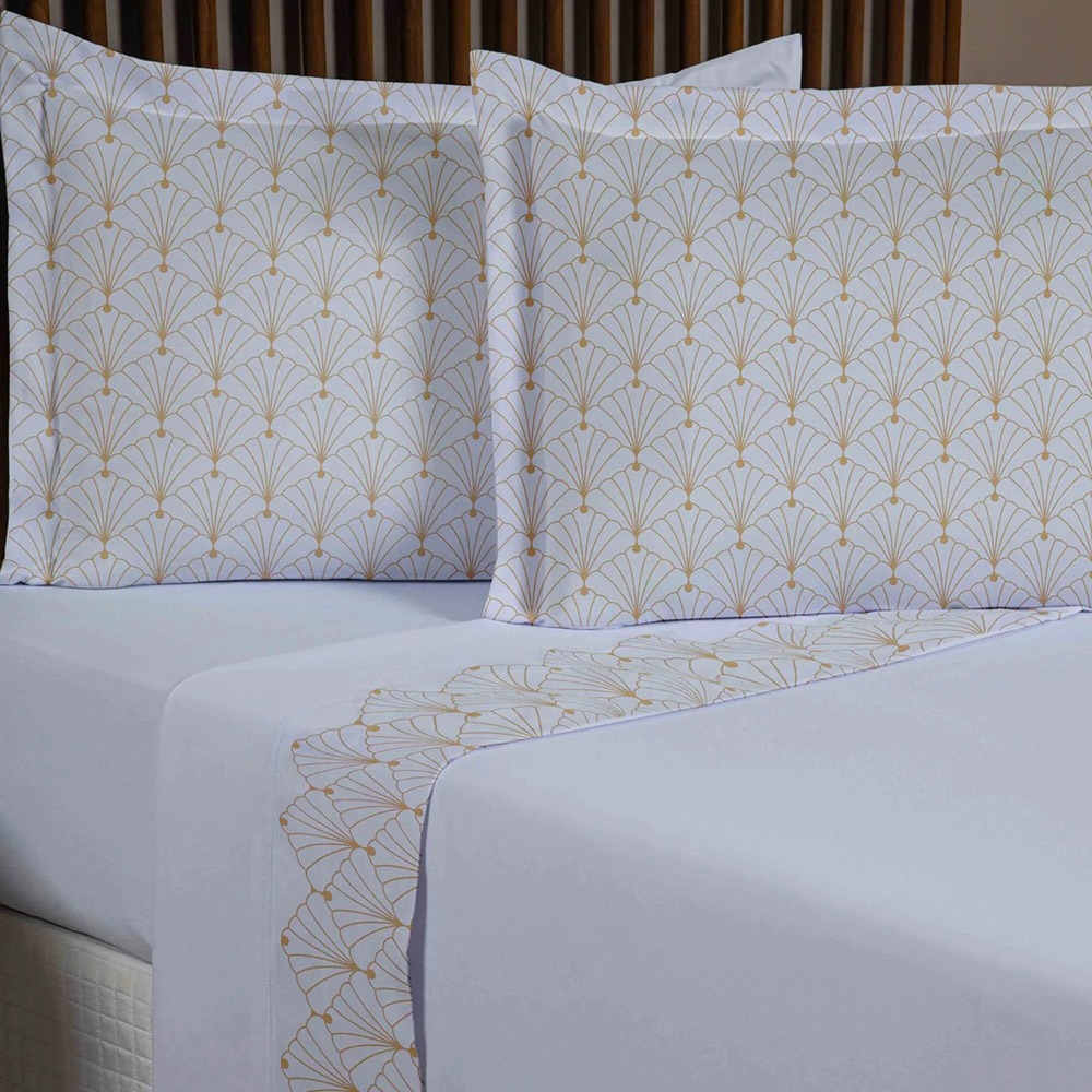 Jogo Cama Lençol Jade Queen Micropercal 300 Fios Fronhas Estampadas 4 Peças - Branco