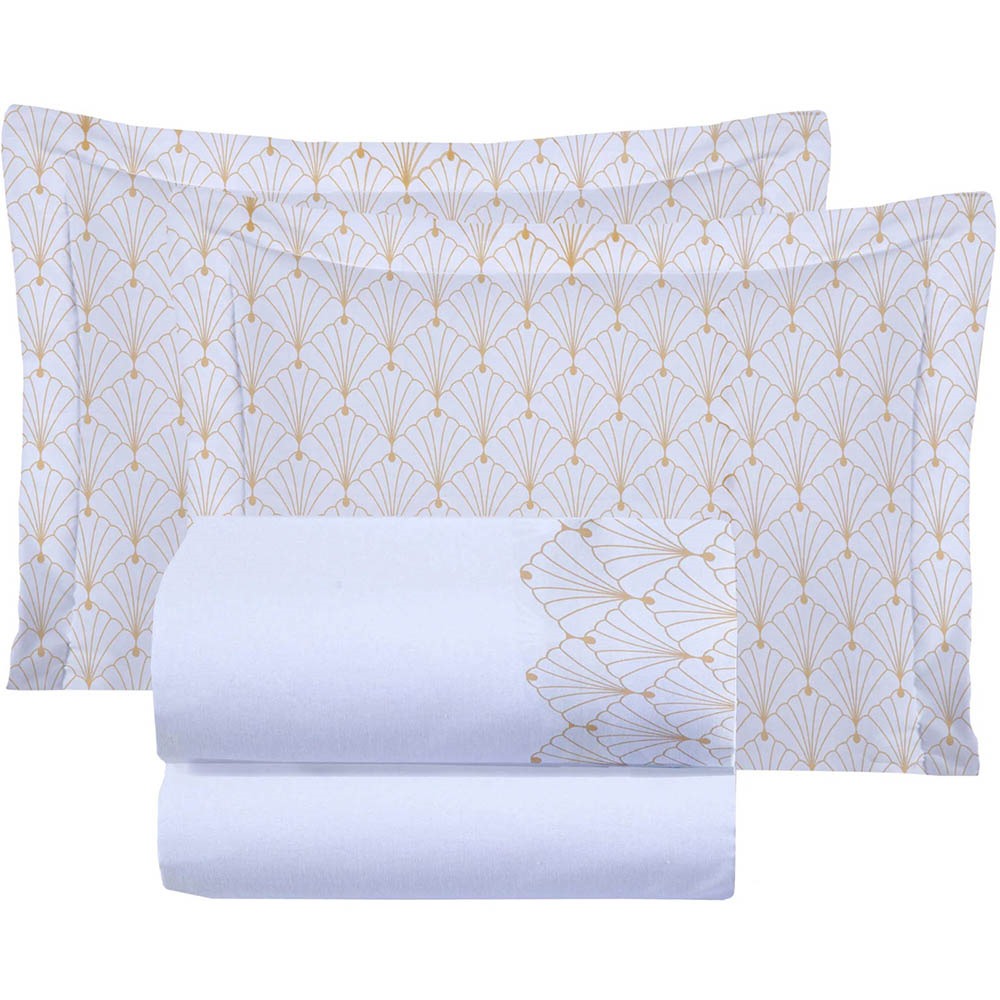 Jogo Cama Lençol Jade King Micropercal 300 Fios Fronhas Estampadas 4 Peças - Branco