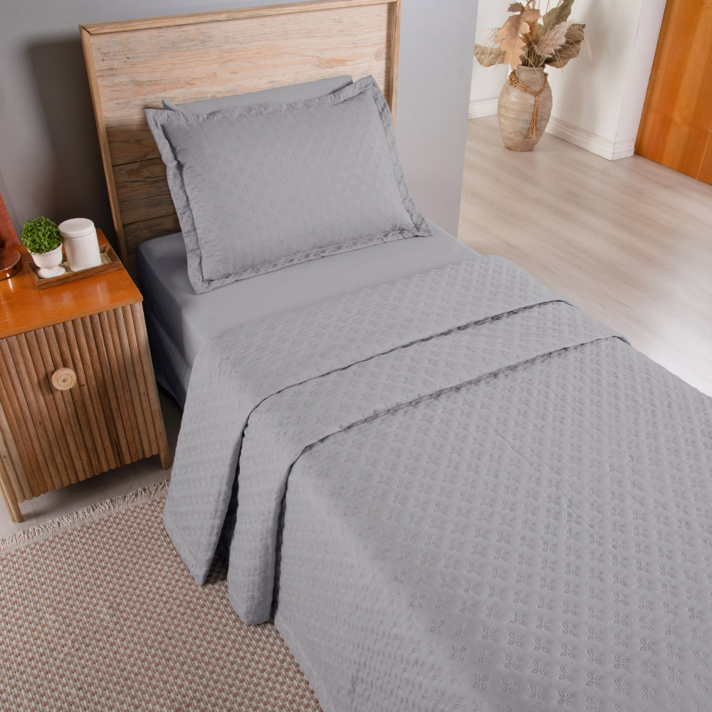 Kit Cobre Leito Colcha Atualle Solteiro Dupla Face Microfibra 2 Peças - Cinza