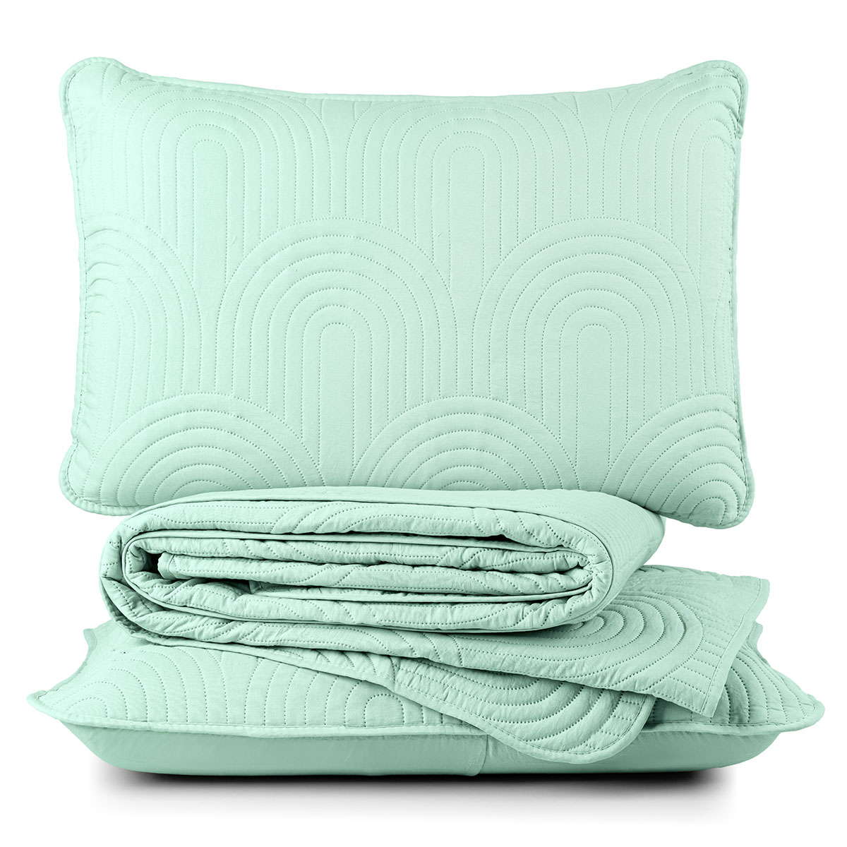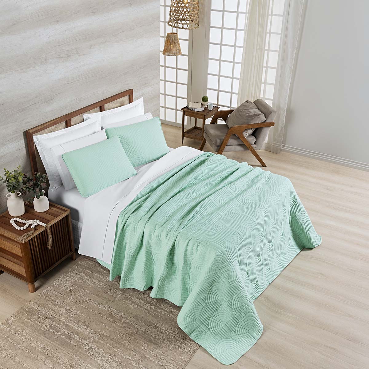 Kit Cobre Leito Colcha Arcos King Dupla Face Matelado 200 Fios 3 Peças Verde