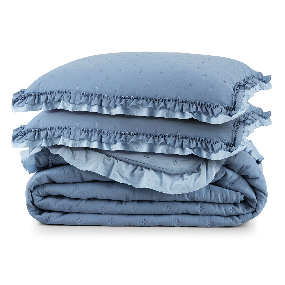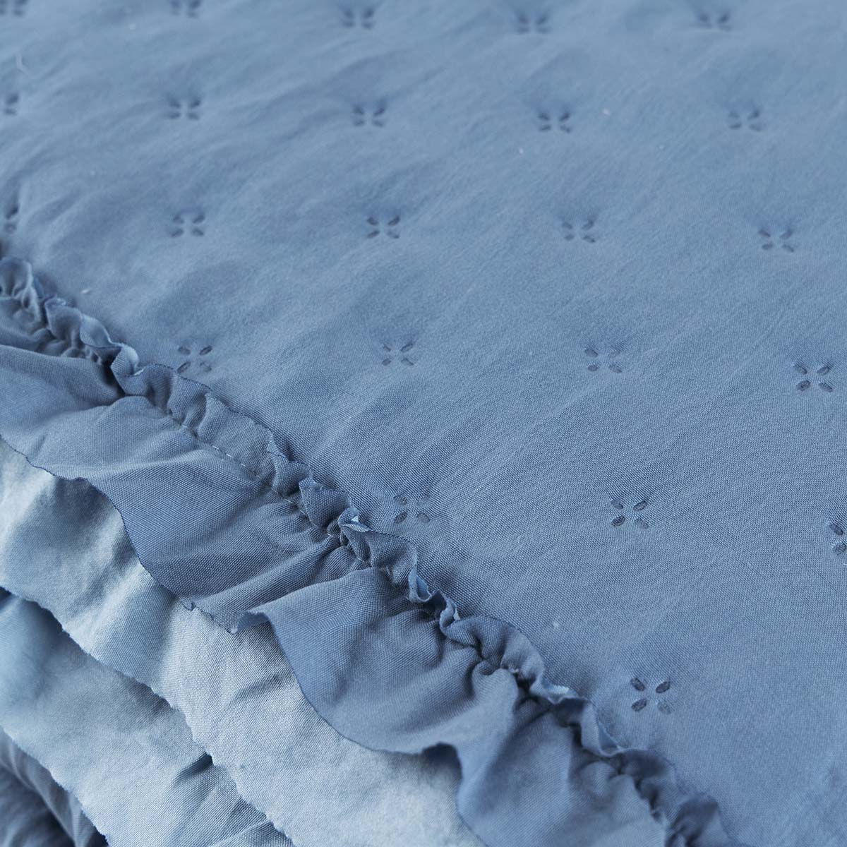 Kit Cobre Leito Colcha Vitta Queen Matelado c/ Babadinhos 200 Fios 3 Peças Azul