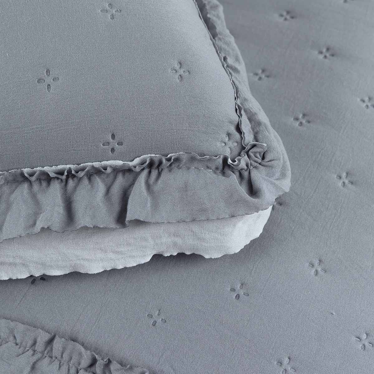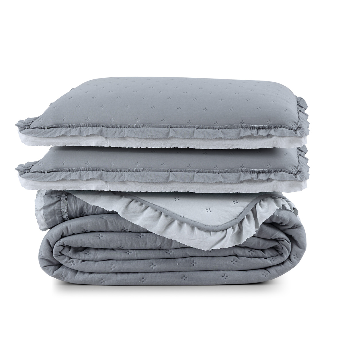 Kit Cobre Leito Colcha Vitta Queen Matelado c/ Babadinhos 200 Fios 3 Peças Cinza