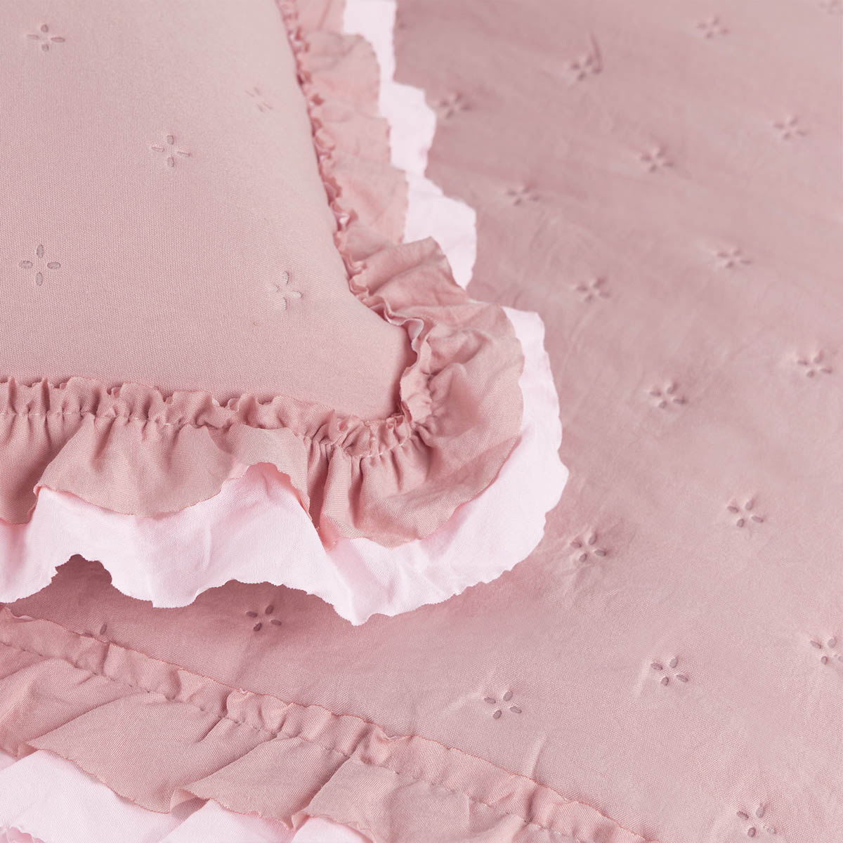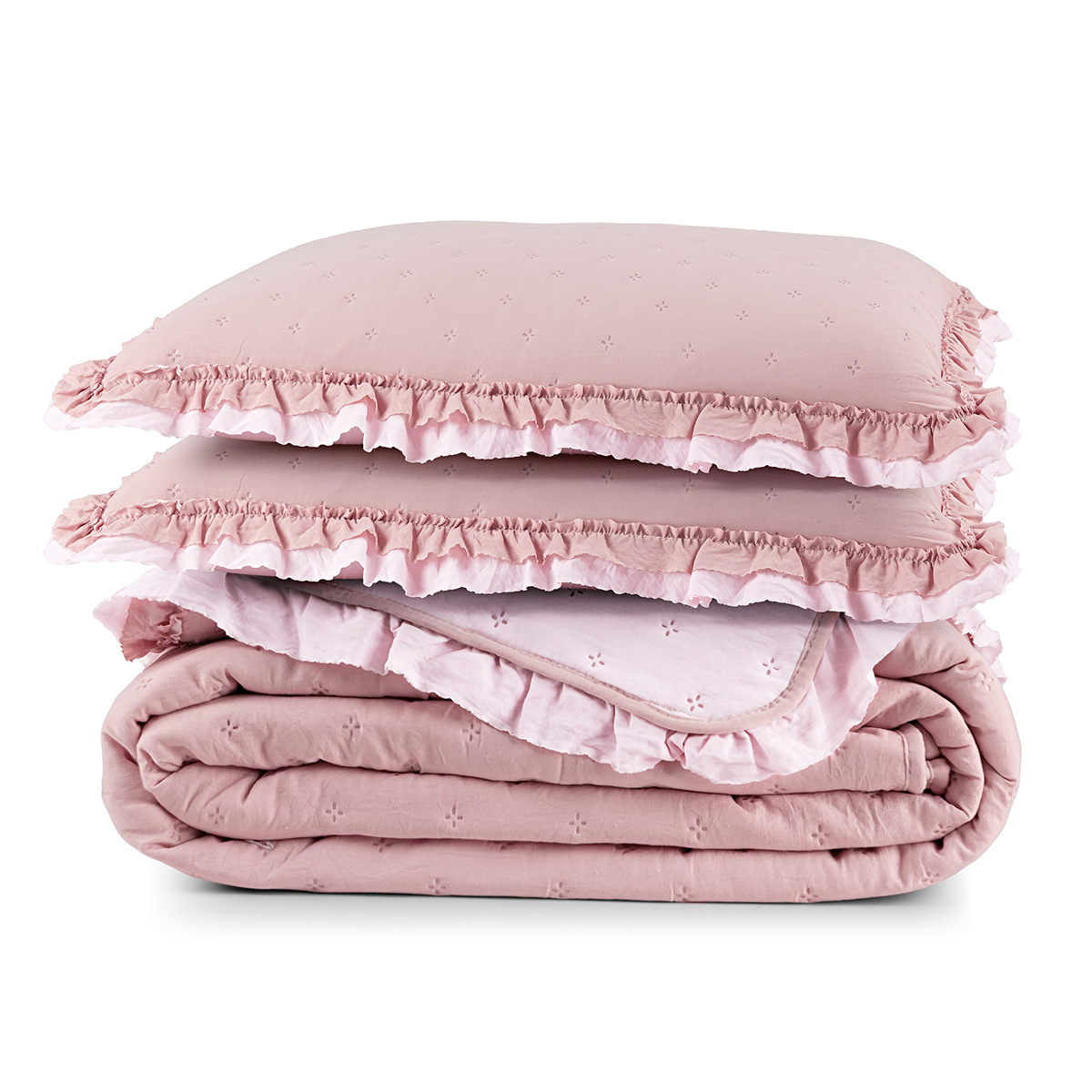 Kit Cobre Leito Colcha Vitta Queen Matelado c/ Babadinhos 200 Fios 3 Peças Rosa
