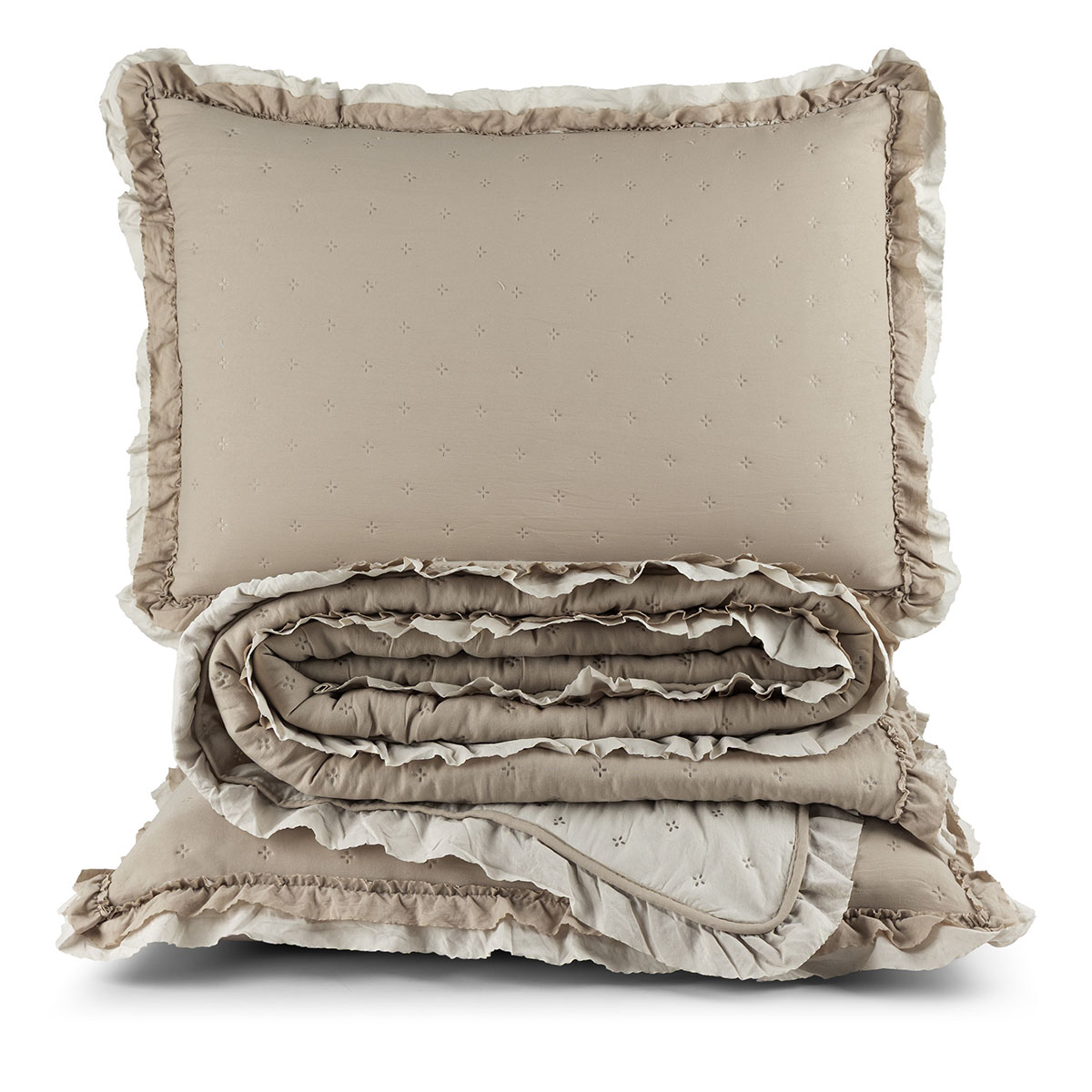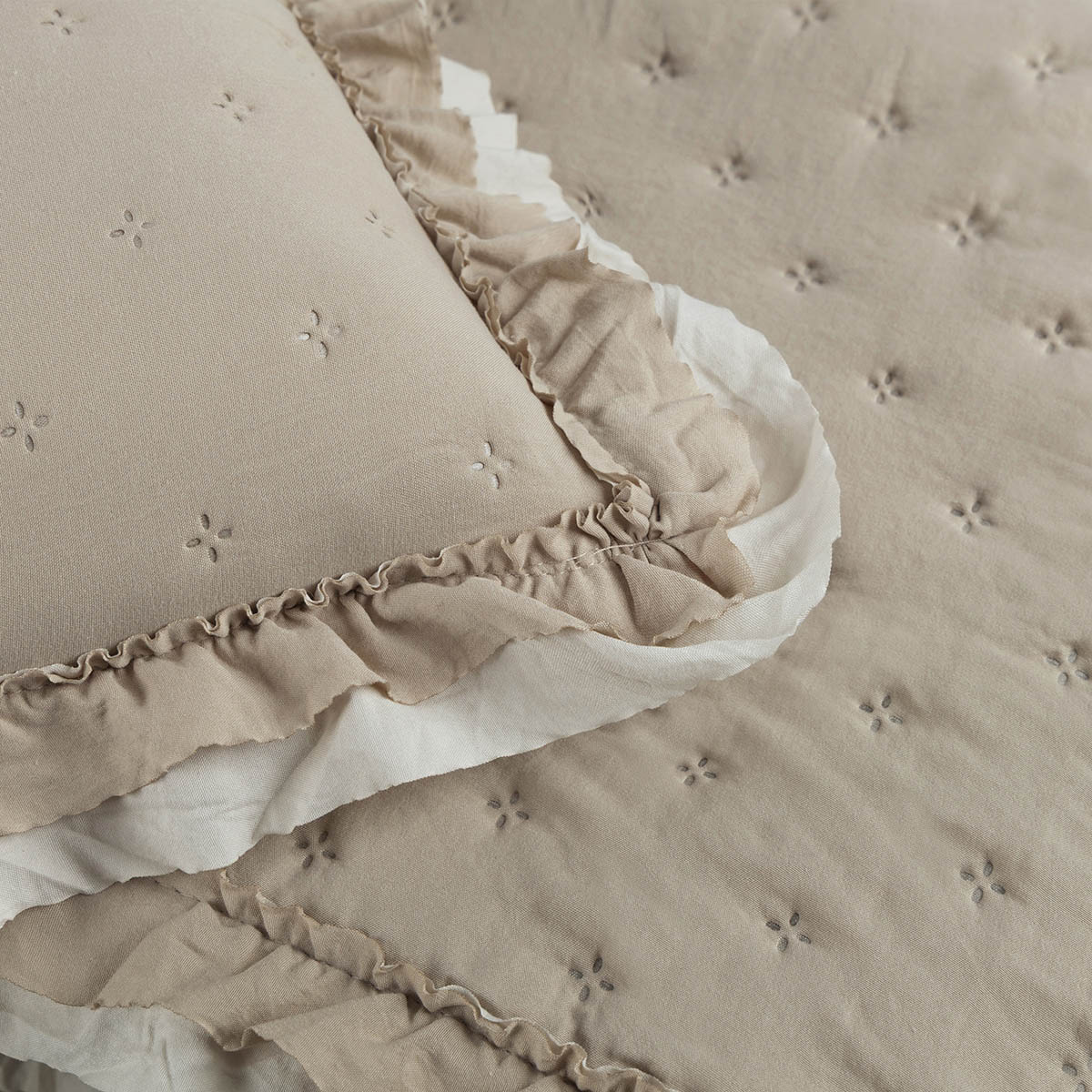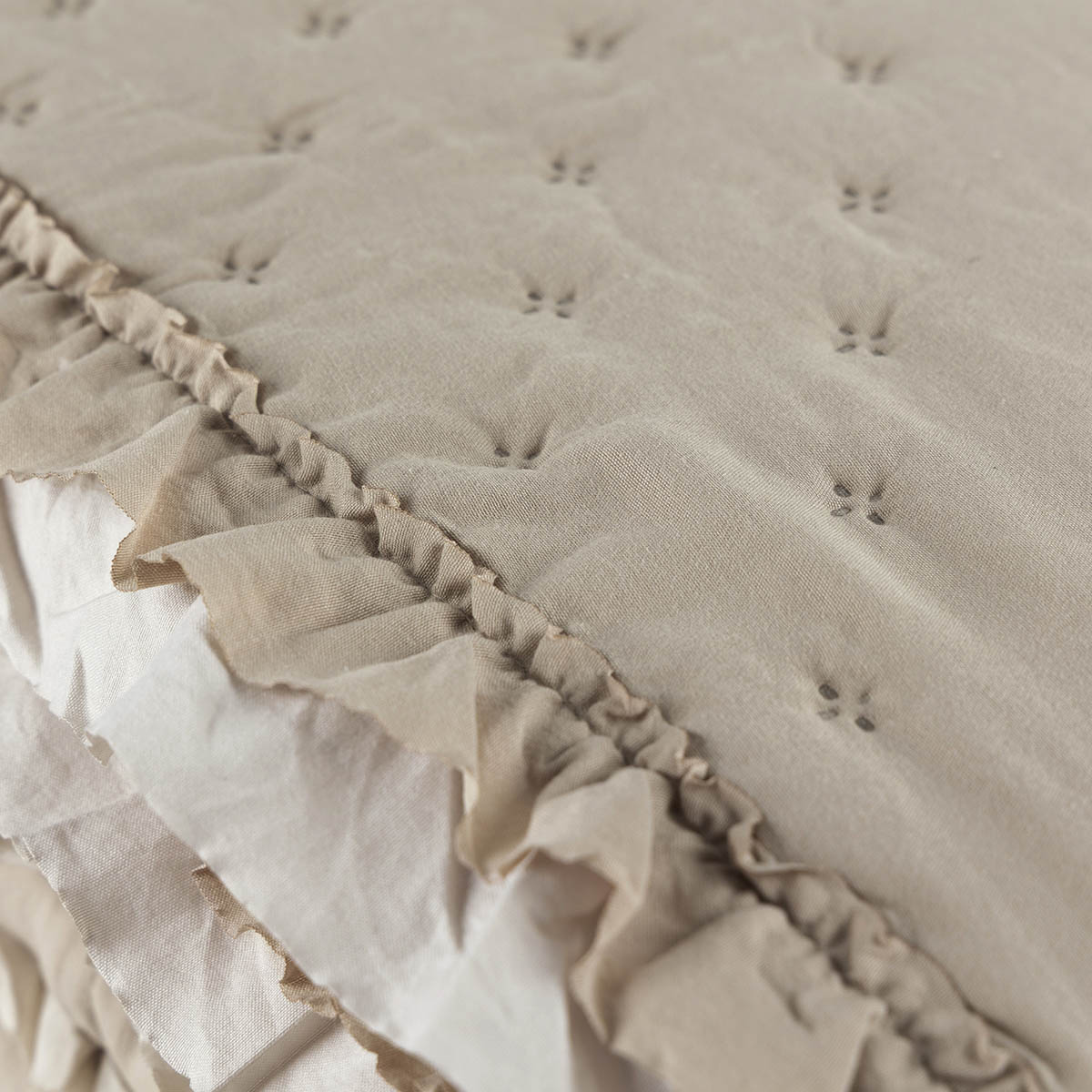 Kit Cobre Leito Colcha Vitta King Matelado c/ Babadinhos 200 Fios 3 Peças Bege