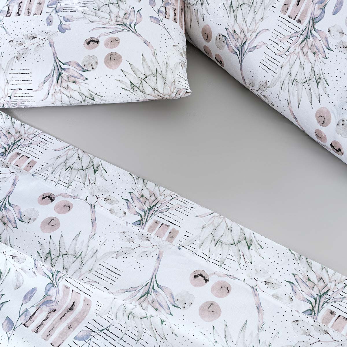 Jogo Cama Lençol Maris Queen Percalle 200 Fios Estampado 4 Peças Protea Cinza