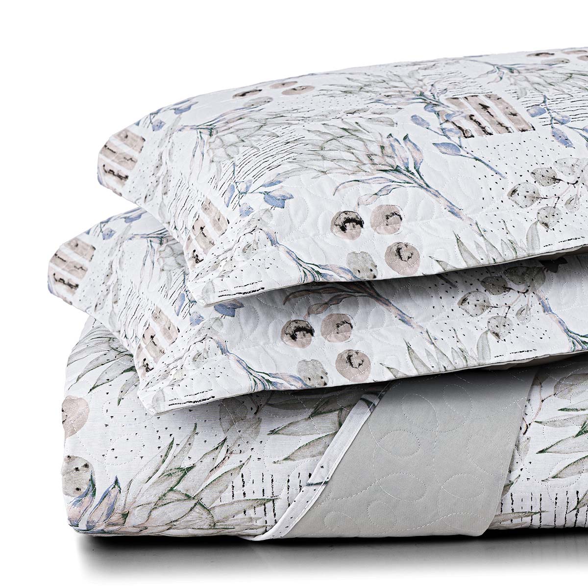 Kit Cobre Leito Colcha Maris Queen Estampado Dupla Face Percalle 200 Fios 3 Peças Protea Cinza