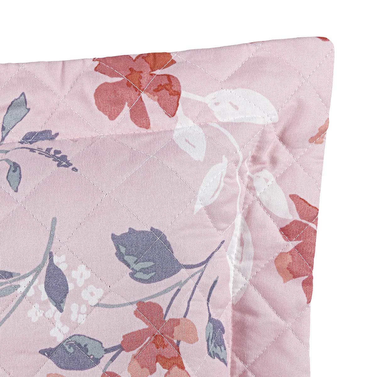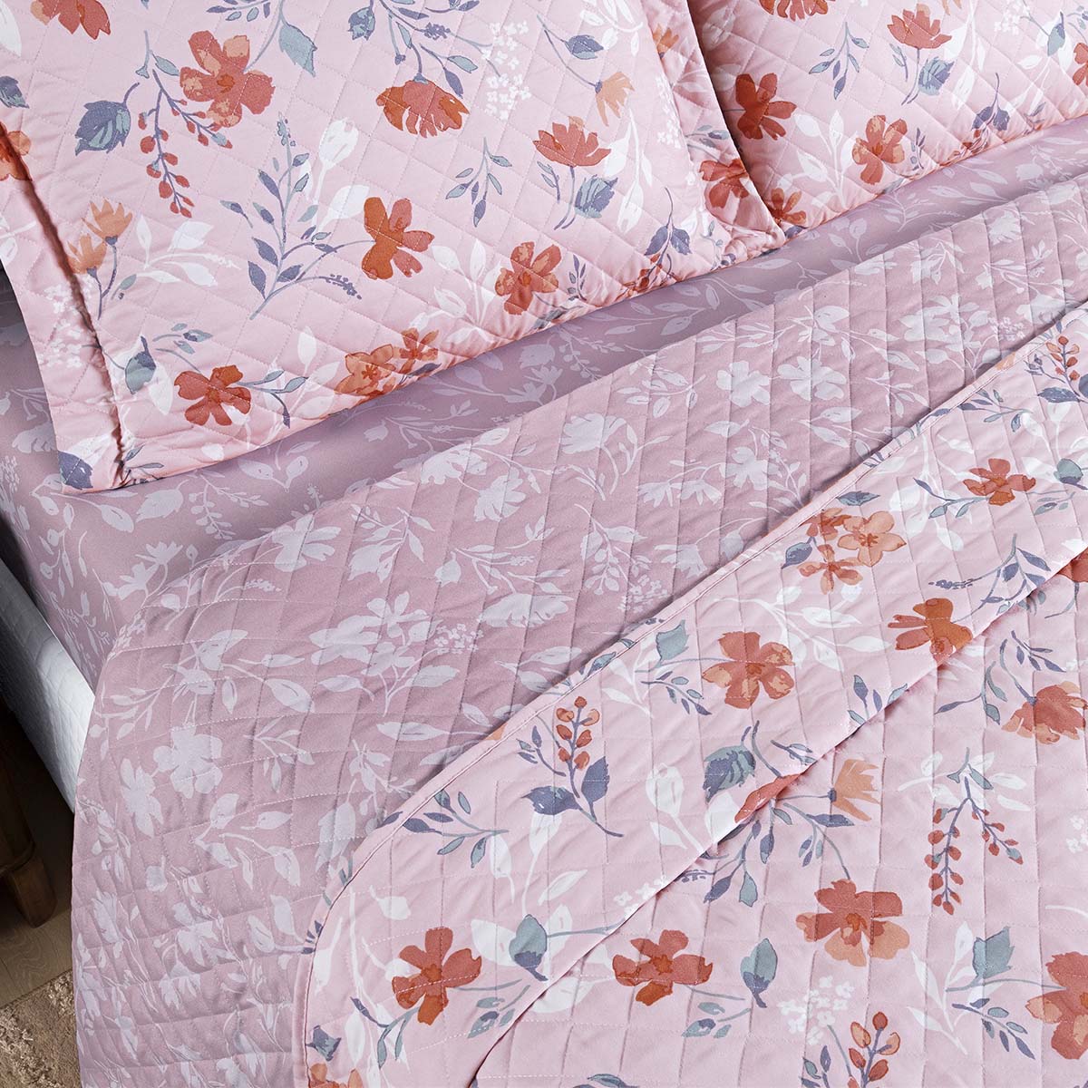 Kit Cobre Leito Colcha Belle Queen Estampado Dupla Face 400 Fios 3 Peças Floral Rosê