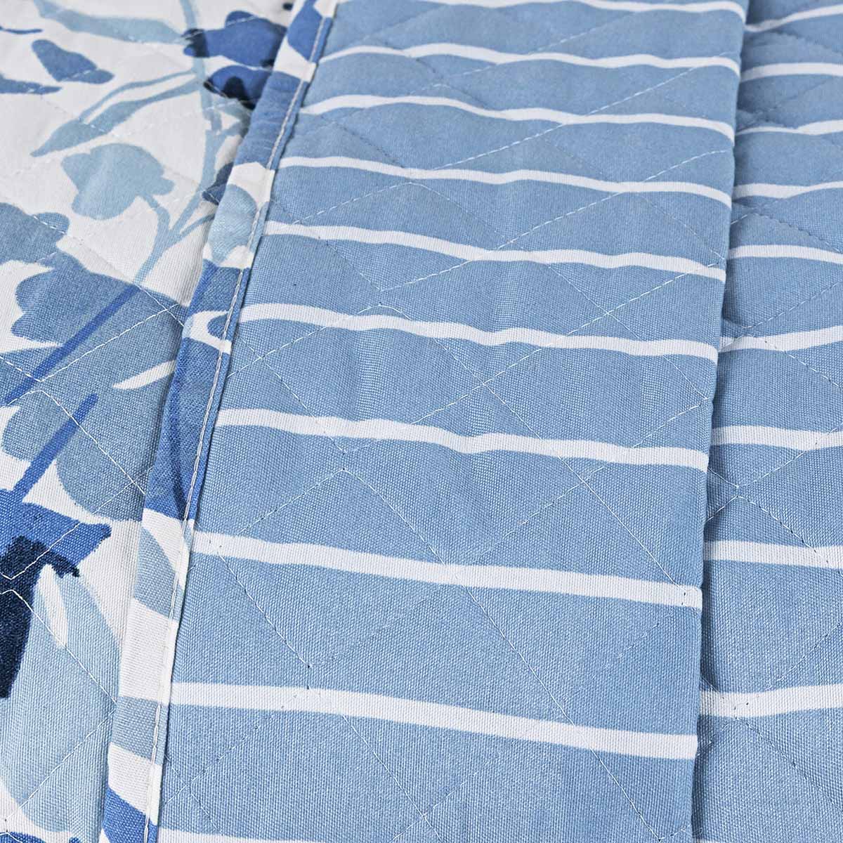 Kit Cobre Leito Colcha Belle Queen Estampado Dupla Face 400 Fios 3 Peças Florido Azul