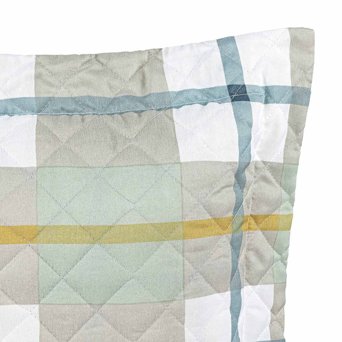 Kit Cobre Leito Colcha Belle Queen Estampado Dupla Face 400 Fios 3 Peças Grid Verde