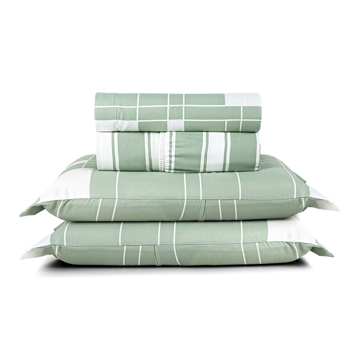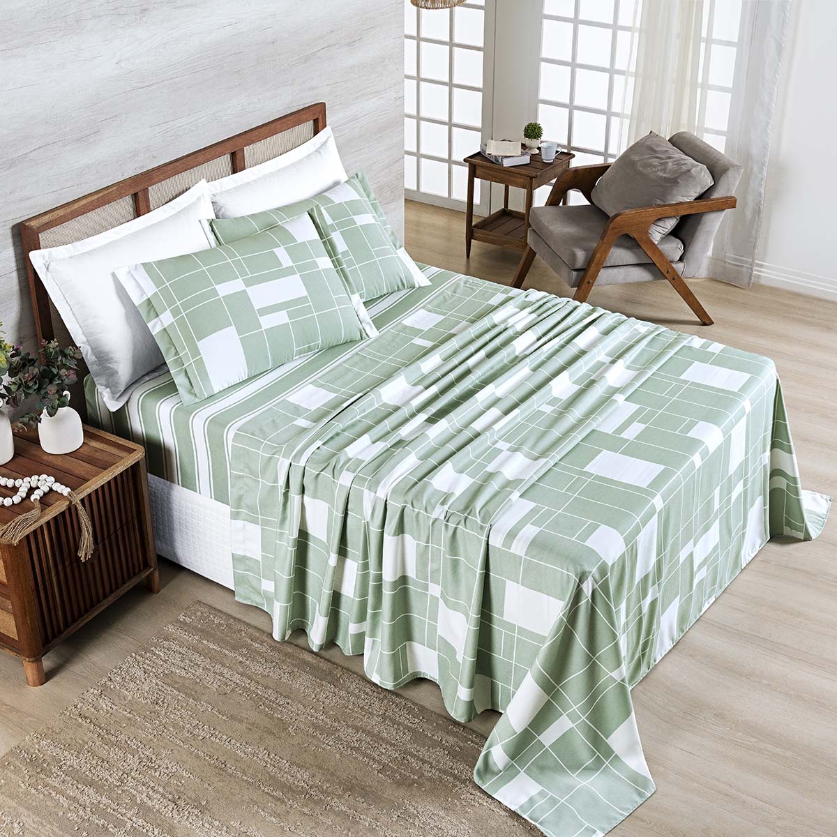 Jogo Cama Lençol Belle Casal Padrão 400 Fios Estampado 4 Peças Quadriculado Verde