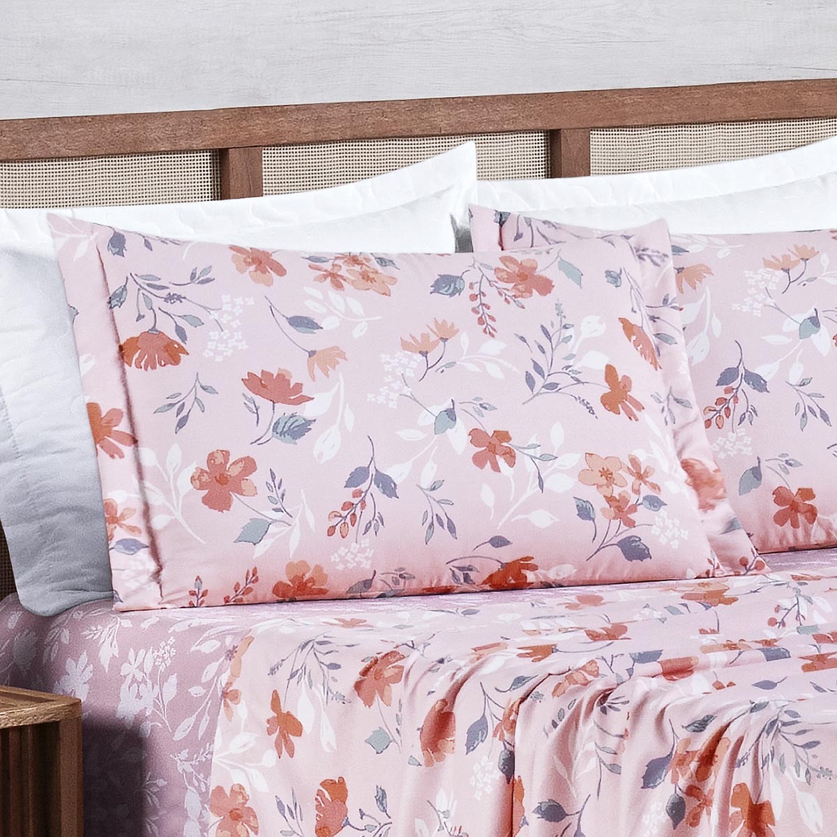 Jogo Cama Lençol Belle King 400 Fios Estampado 4 Peças Floral Rosê