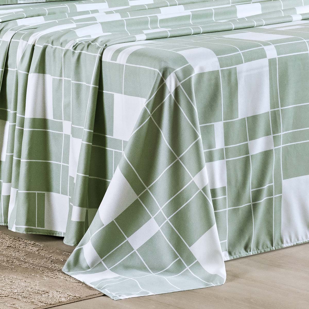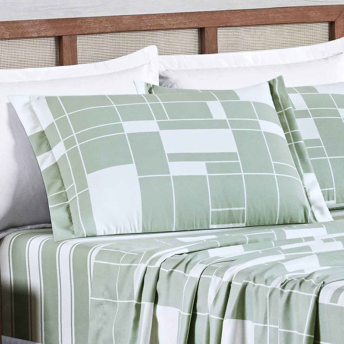 Jogo Cama Lençol Belle King 400 Fios Estampado 4 Peças Quadriculado Verde