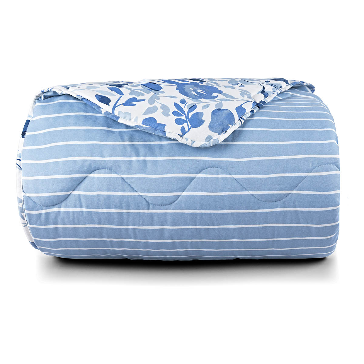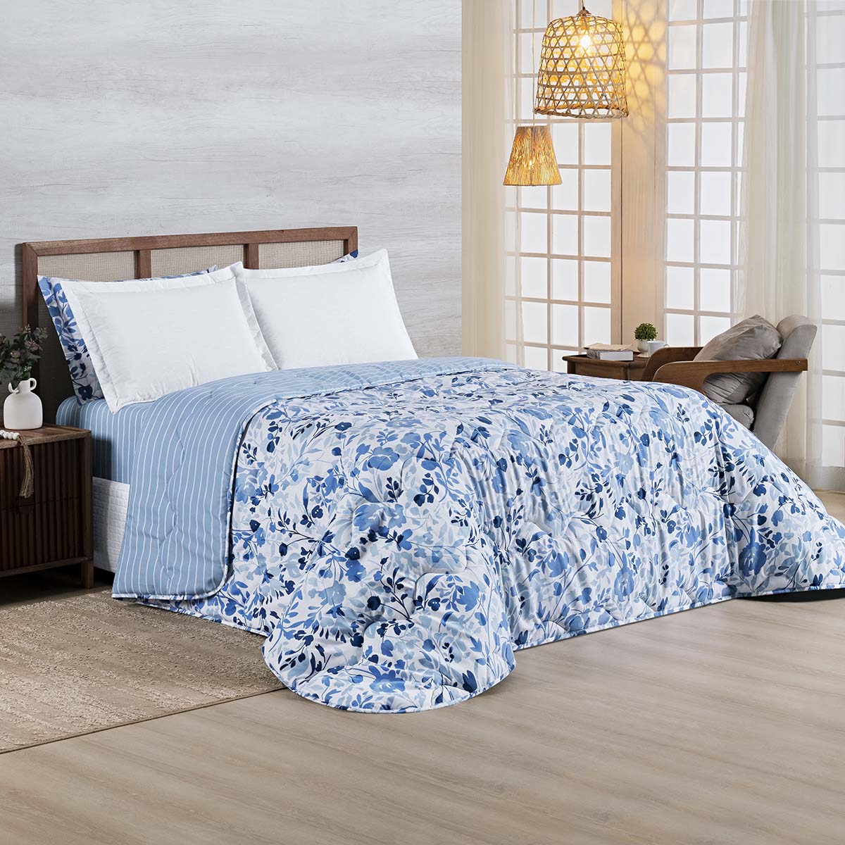 Edredom Cobertor Belle Queen 400 Fios Dupla Face Estampado Florido Azul