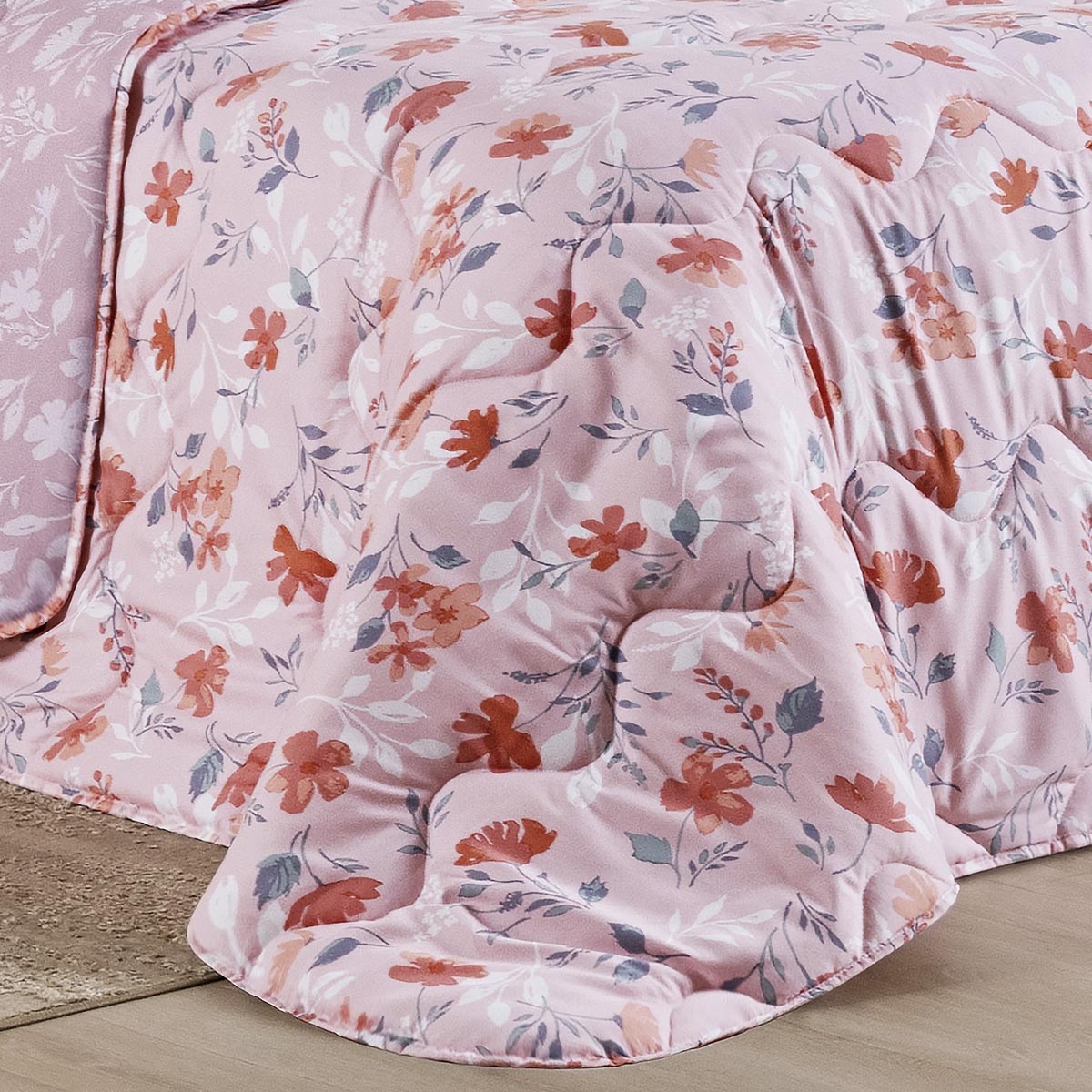 Edredom Cobertor Belle Super King 400 Fios Dupla Face Estampado Floral Rosê