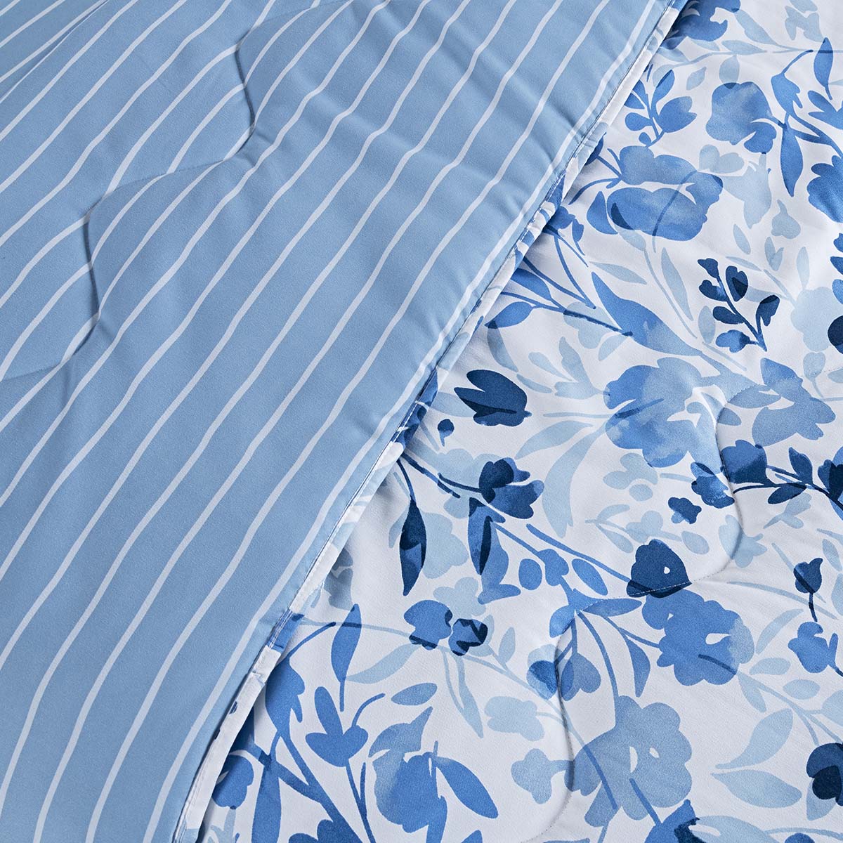 Edredom Cobertor Belle Super King 400 Fios Dupla Face Estampado Florido Azul