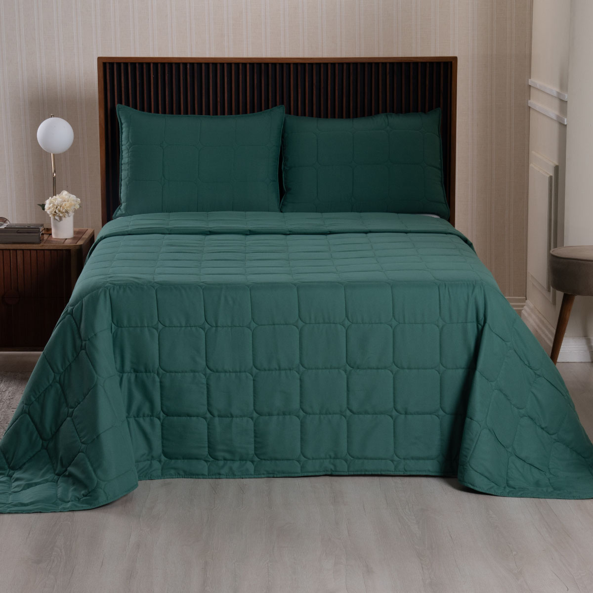 Kit Cobre Leito Colcha Speciale King Matelado Toque Acetinado 400 Fios 3 Peças Verde