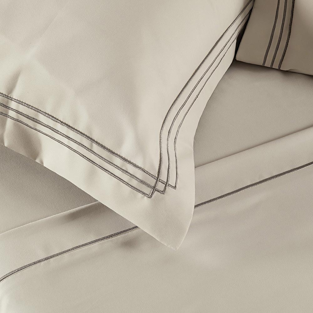 Jogo Cama Lençol Trivio Queen 400 Fios Bordado Fronhas Aba Americana 4 Peças Bege