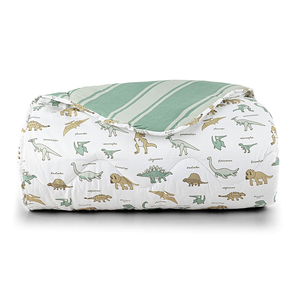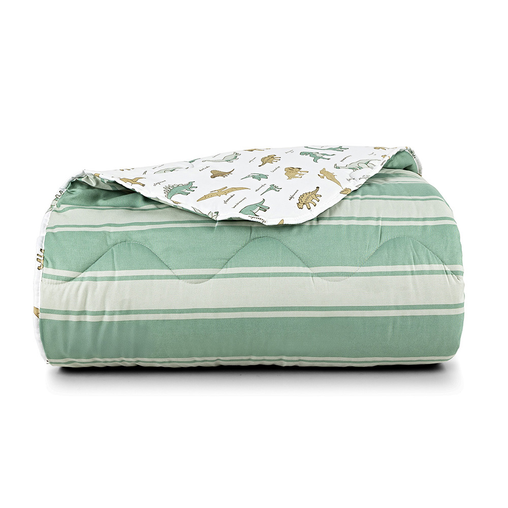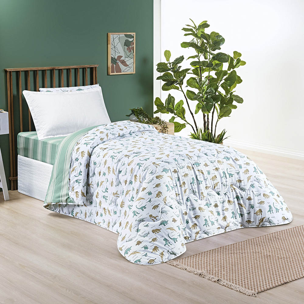 Edredom Cobertor Lutti Solteiro Infantiil Dupla Face 200 Fios Dinossauro Verde