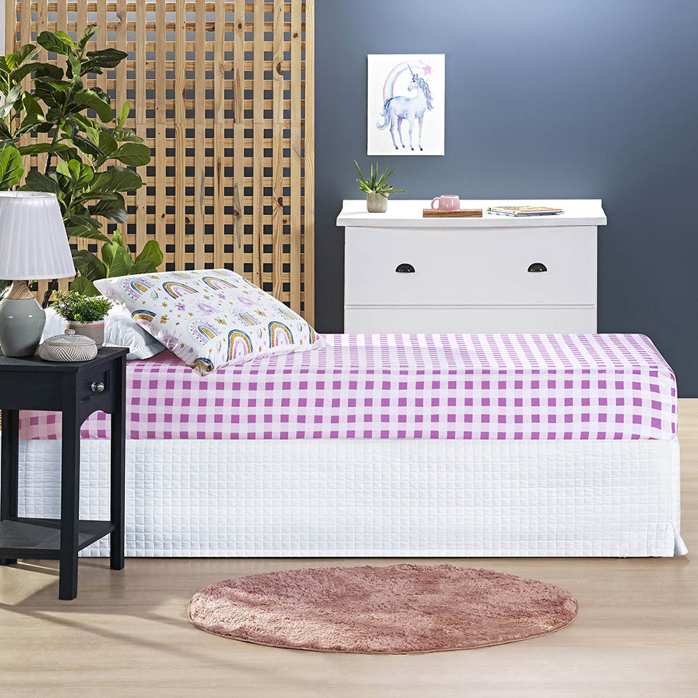 Deixe o quarto das crianças ainda mais aconchegante e divertido com o Jogo de Lençol Infantil em Micropercal 200 fios! Confeccionado em tecido macio, resistente e de alta qualidade, ele proporciona noites de sono tranquilas e confortáveis. O lençol de baixo vem com elástico, garantindo praticidade na hora de arrumar a cama e perfeito ajuste ao colchão. As lindas estampas trazem alegria e delicadeza ao ambiente, transformando a hora de dormir em um momento especial. Benefícios e características:- Micropercal 200 fios: toque macio e agradável- Lençol com elástico para ajuste perfeito- Estampas encantadoras que decoram o quarto- Tecido resistente e durável, ideal para o dia a dia Conforto, beleza e praticidade reunidos em um só produto para tornar os sonhos das crianças ainda mais doces! Contém na embalagem:01 Lençol de Baixo com Elástico 1,88m X 0,88m X 30cm 01 Fronha 70cm X 50cm Composição:Tecido Micropercal 200 Fios - 100% Poliéster. Atenção: As cores do produto podem sofrer pequenas variações devido à configuração da tela do seu dispositivo.