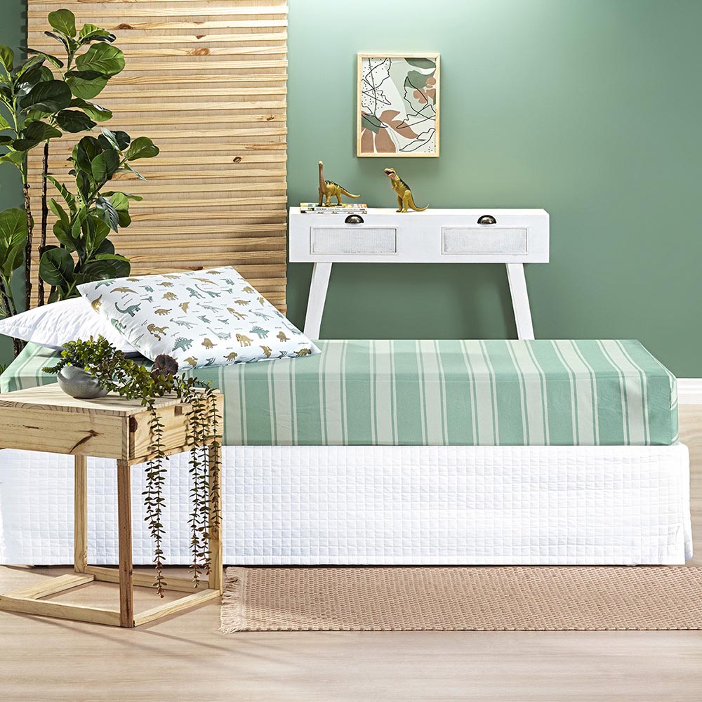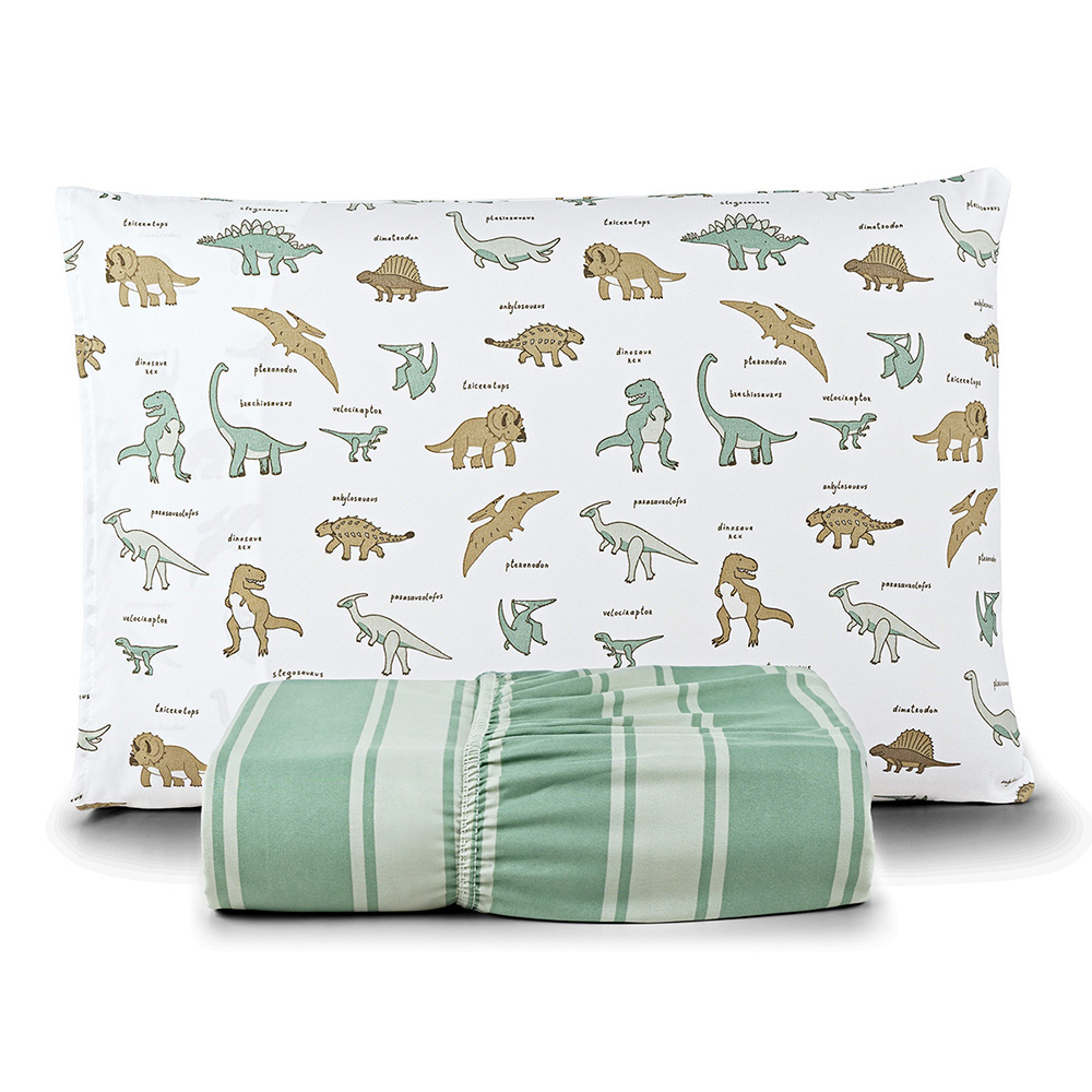 Jogo de Cama Lençol Lutti Solteiro Infantil 200 Fios Estampado 2 Peças Dinossauro Verde