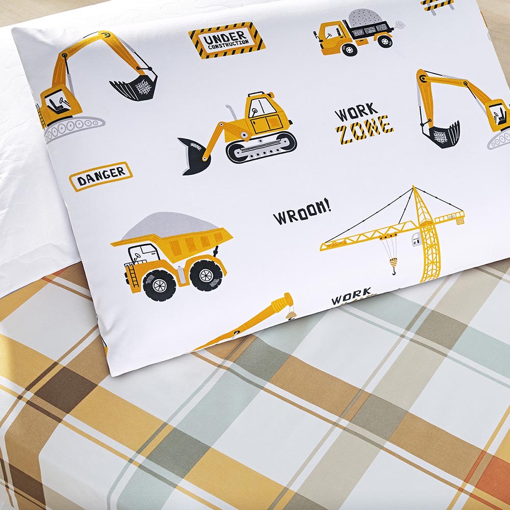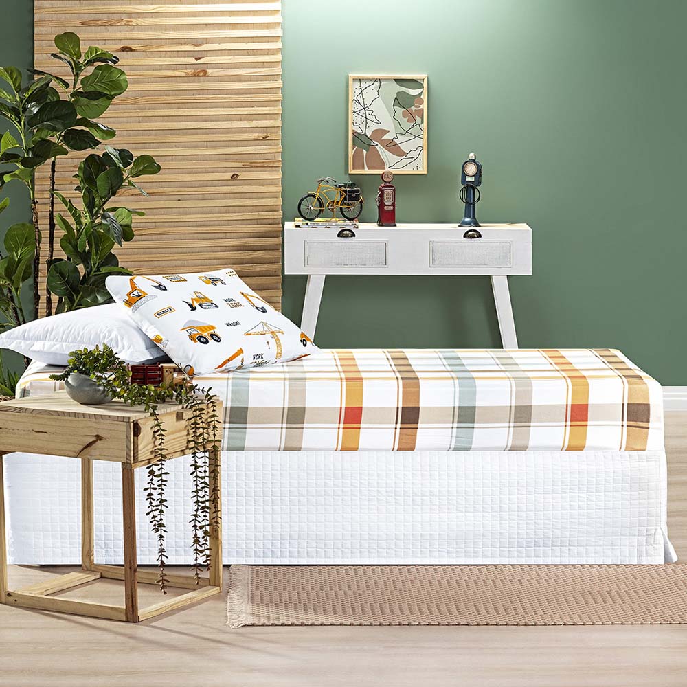 Jogo de Cama Lençol Lutti Solteiro Infantil 200 Fios Estampado 2 Peças Trator Caminhão Branco