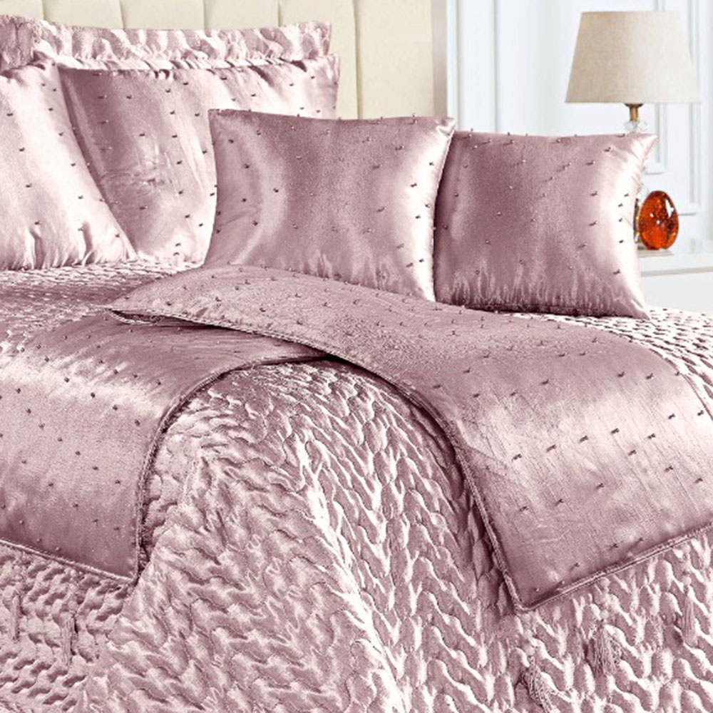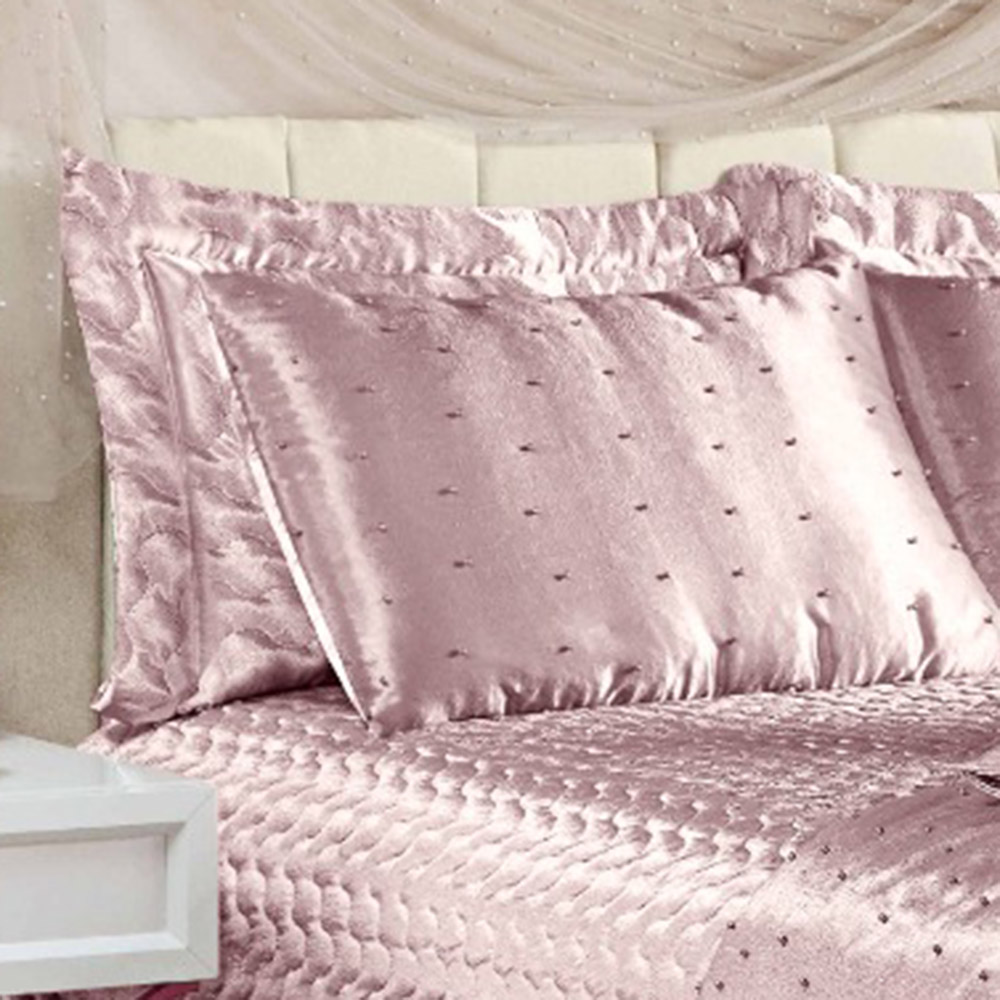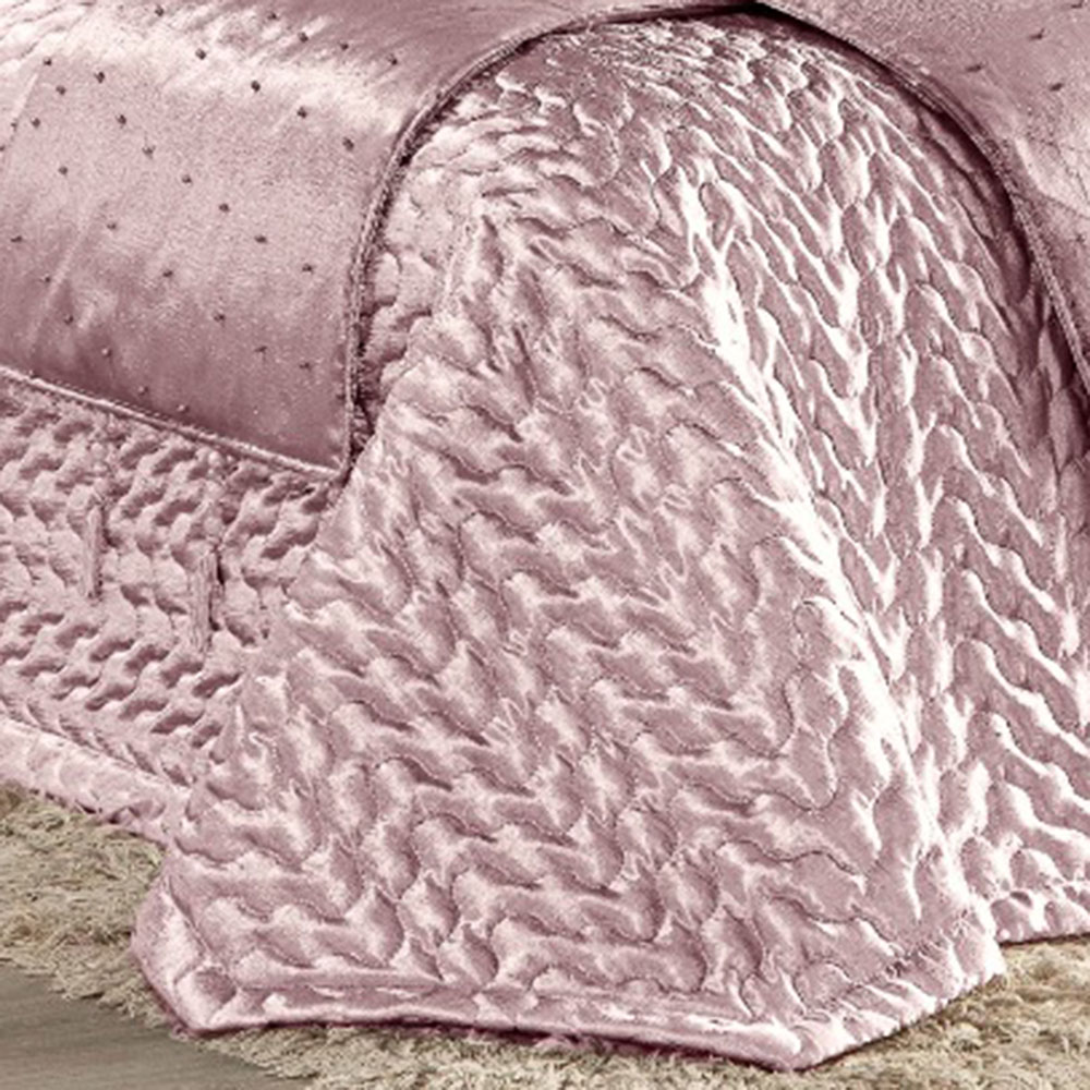 Kit Cobre Leito Colcha Fascínio Queen Cetim c/ Tule de Pérola 10 Peças - Rosê