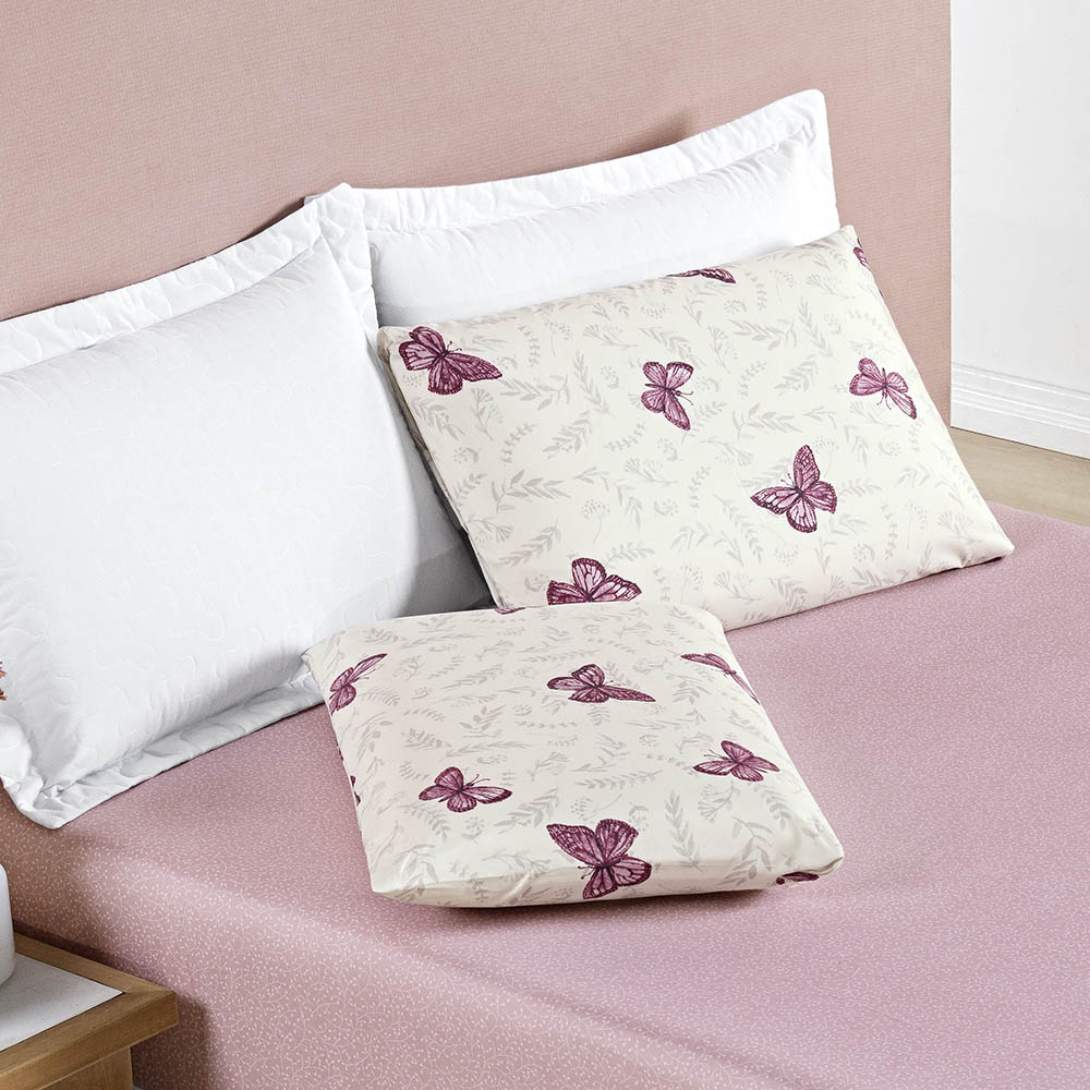 Jogo Cama Lençol Celi Queen Micropercal Estampado 200 Fios 3 Peças Borboletas Rosê