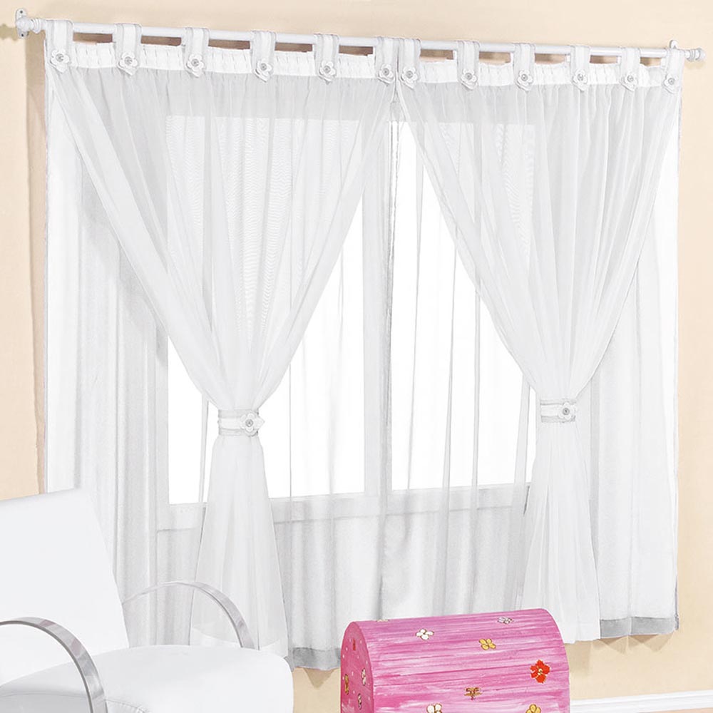 Cortina Infantil Juvenil para Varão Tecido Voal 2,00 x 1,70 Metros Alt - Branca