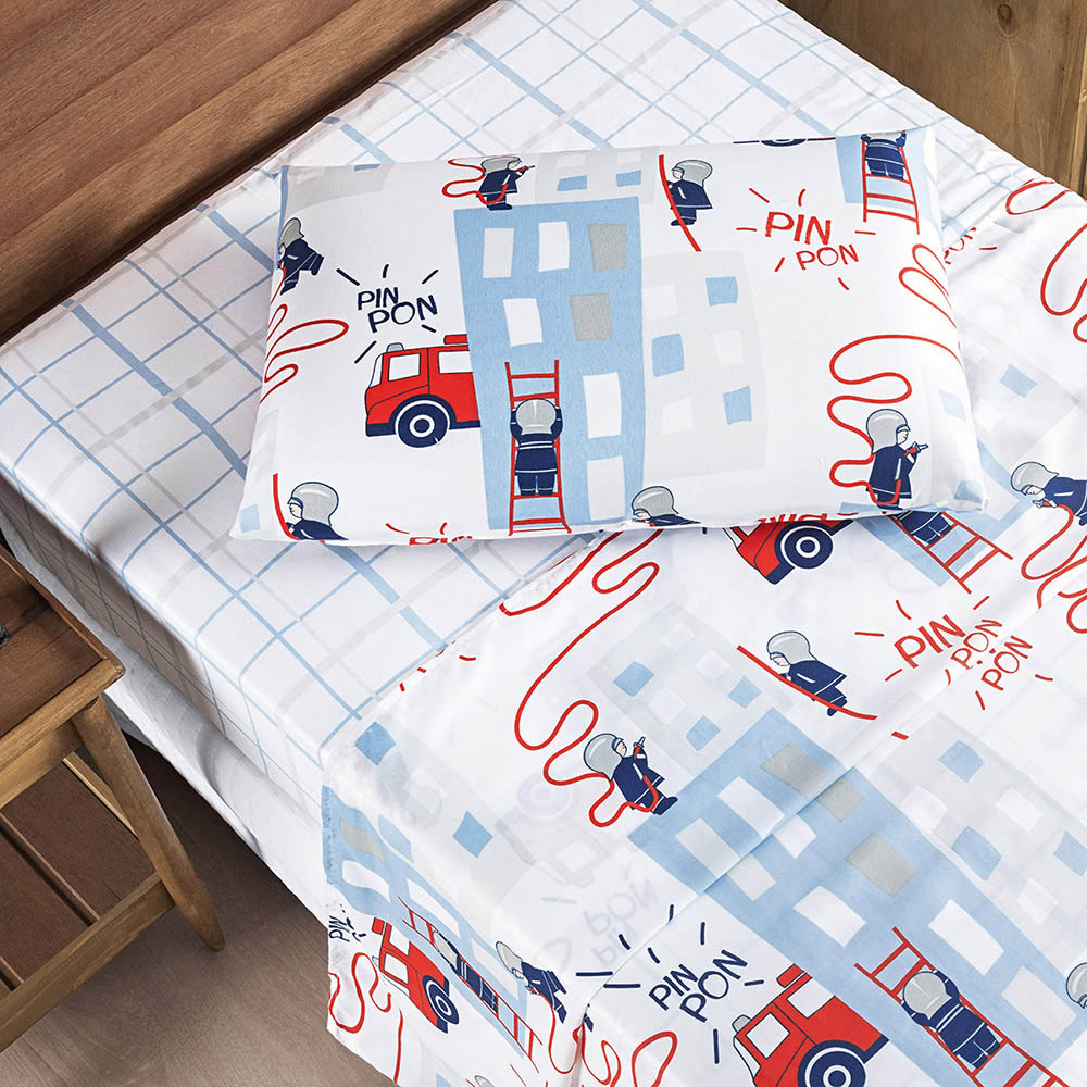 Jogo Cama Lençol Fantasy Solteiro Cama Quarto Infantil Microfibra 3 Peças Bombeiro Branco