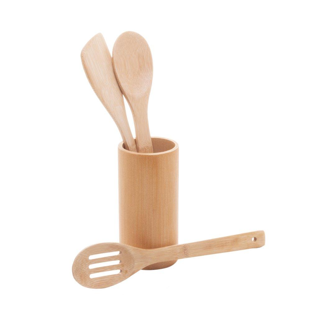 3 Utensílios Lyor e Suporte de Bambu Natural