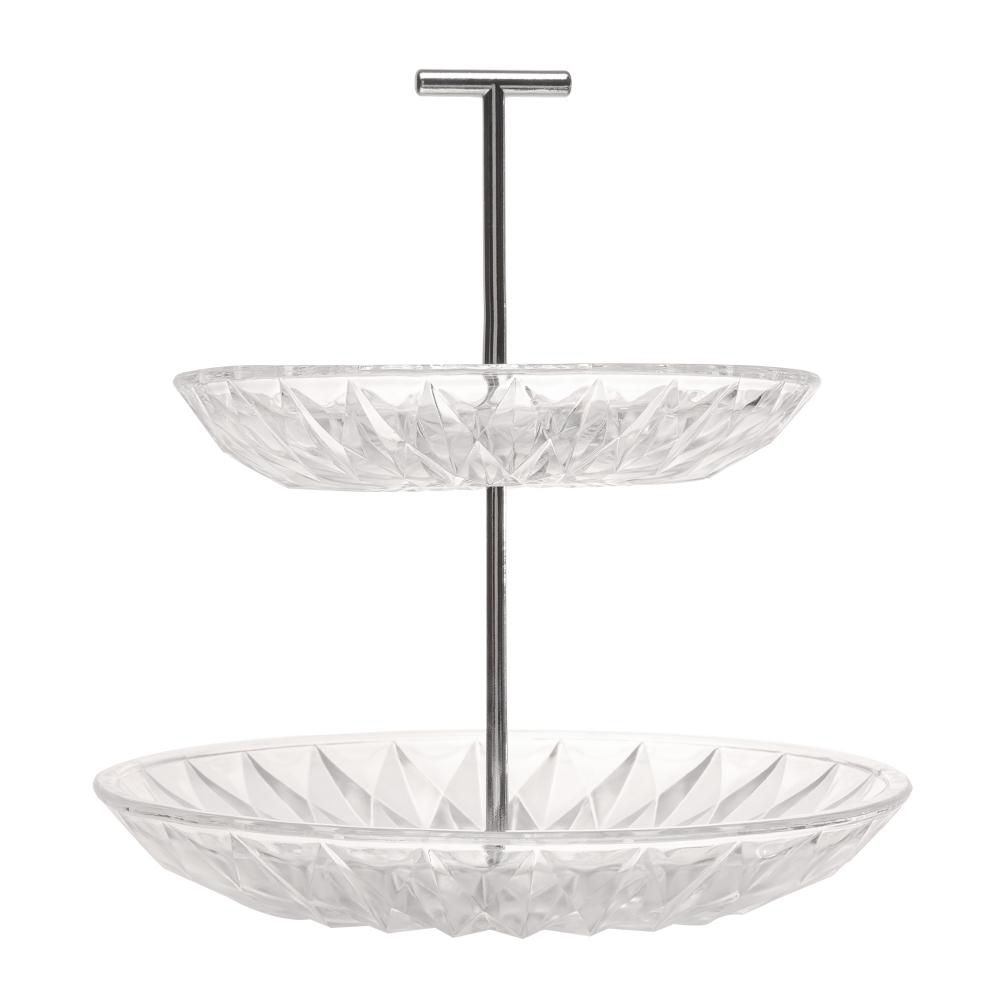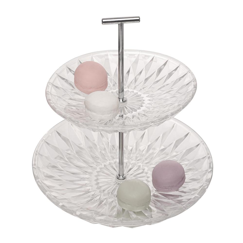 Porta Doces Lyor Diamond de Vidro 2 Andares 25cm