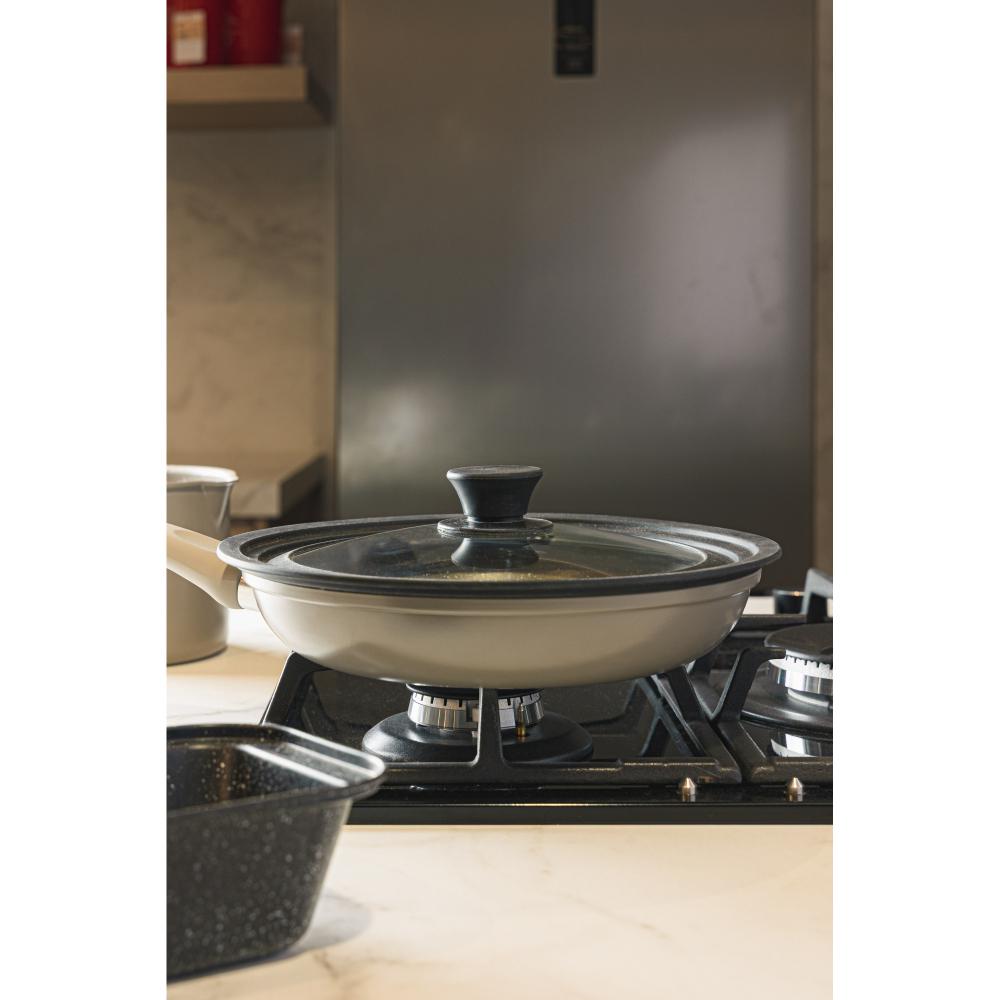 Tampa Universal para Panela com 22 a 26cm Lyor Preta VidroA Tampa Universal para Panela da Lyor é uma solução prática e versátil para a sua cozinha. Compatível com panelas de 22 a 26cm, esta tampa em vidro com borda preta é ideal para quem busca eficiência e elegância ao cozinhar.A Tampa Universal para Panela da Lyor é uma solução prática e versátil para a sua cozinha. Compatível com panelas de 22 a 26cm, esta tampa em vidro com borda preta é ideal para quem busca eficiência e elegância ao cozinhar.VersatilidadeCom ajuste para panelas de diferentes tamanhos, a tampa se adapta facilmente, eliminando a necessidade de várias tampas específicas e otimizando espaço na cozinha.Resistência e DurabilidadeProduzida em vidro resistente e com borda em silicone, a tampa é durável e oferece segurança durante o uso, além de permitir visualizar o preparo dos alimentos.Praticidade no Dia a DiaO design ergonômico e o fácil manuseio garantem conveniência, seja para cozinhar ou para armazenar alimentos.Simplifique suas tarefas na cozinha com a Tampa Universal da Lyor, que une praticidade e estilo em um único produto.Lyor - Soluções completas para o seu Lar.Contém: 1 Tampa Universal para PanelaLava Louça: NãoMicroondas: NãoForno: NãoFogão: NãoFreezer: NãoMedidas Produto: Altura 4,50cm x Largura 27,40cm x Comprimento 27,40cmPeso: 0,55KgCor: BrancoMaterial: VidroLavar com detergente neutro, esponja macia e secar imediatamente. Não lavar em máquinas, não utilizar produtos químico.