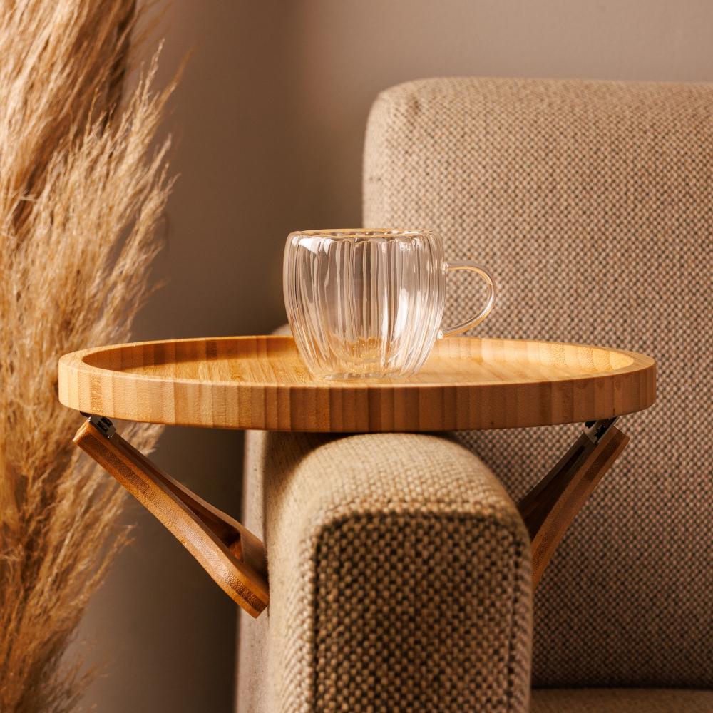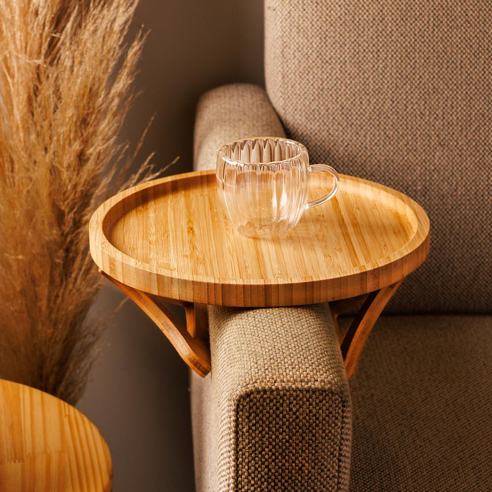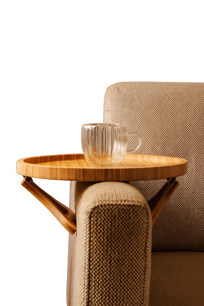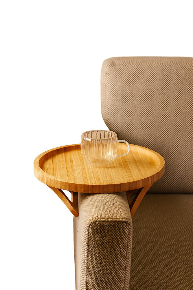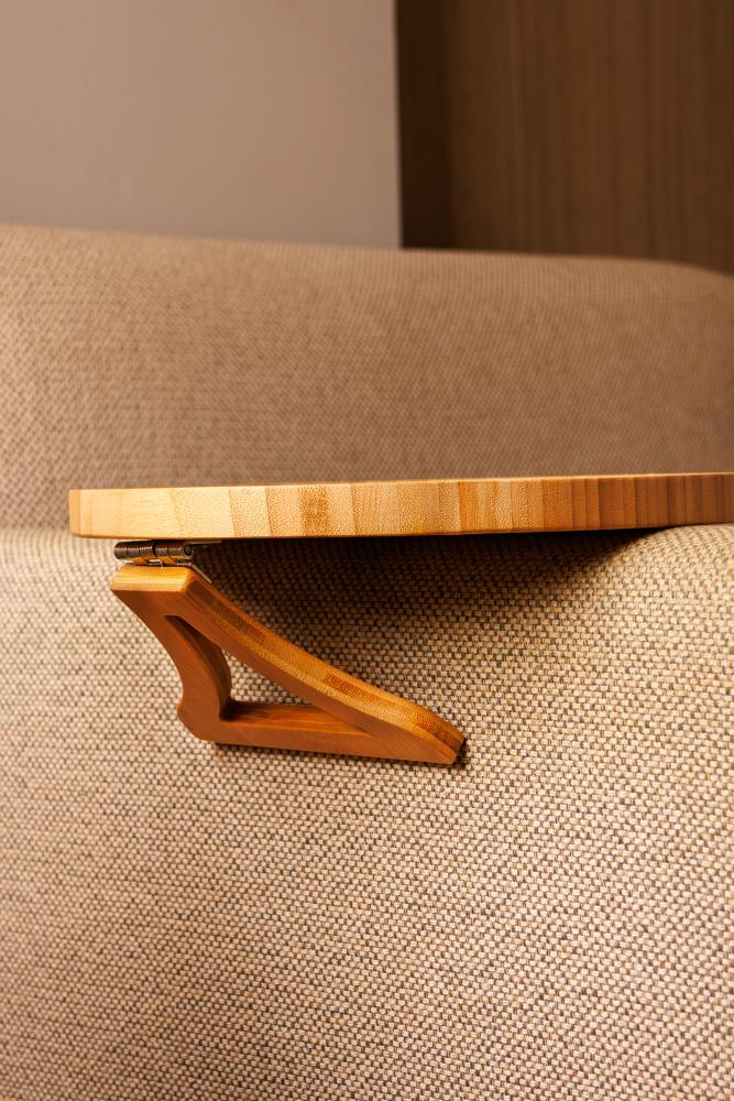Bandeja Redonda Dobrável para Braço de Sofá Lyor 25cm Bambu