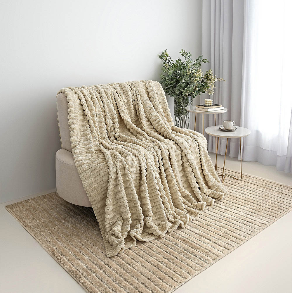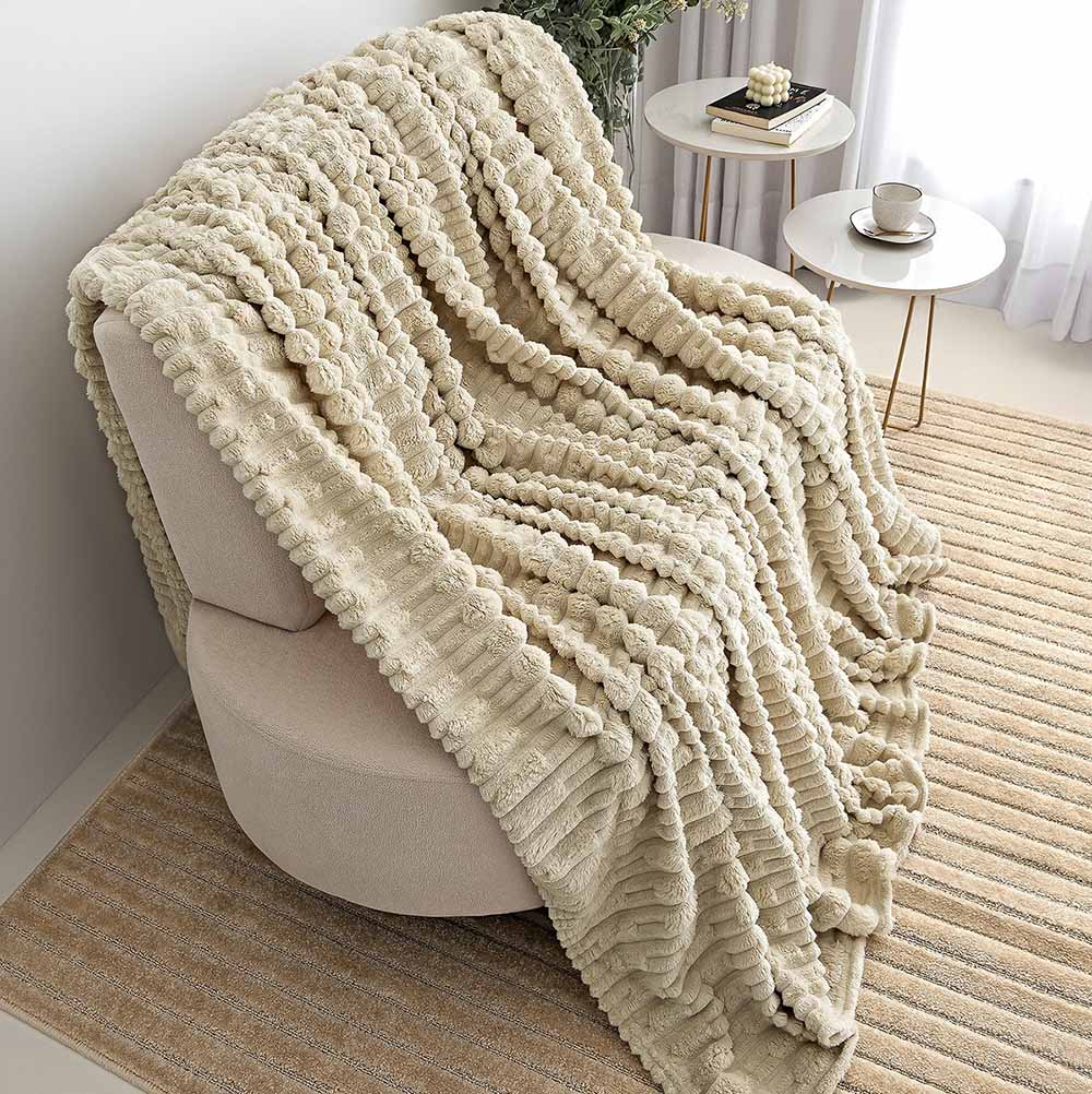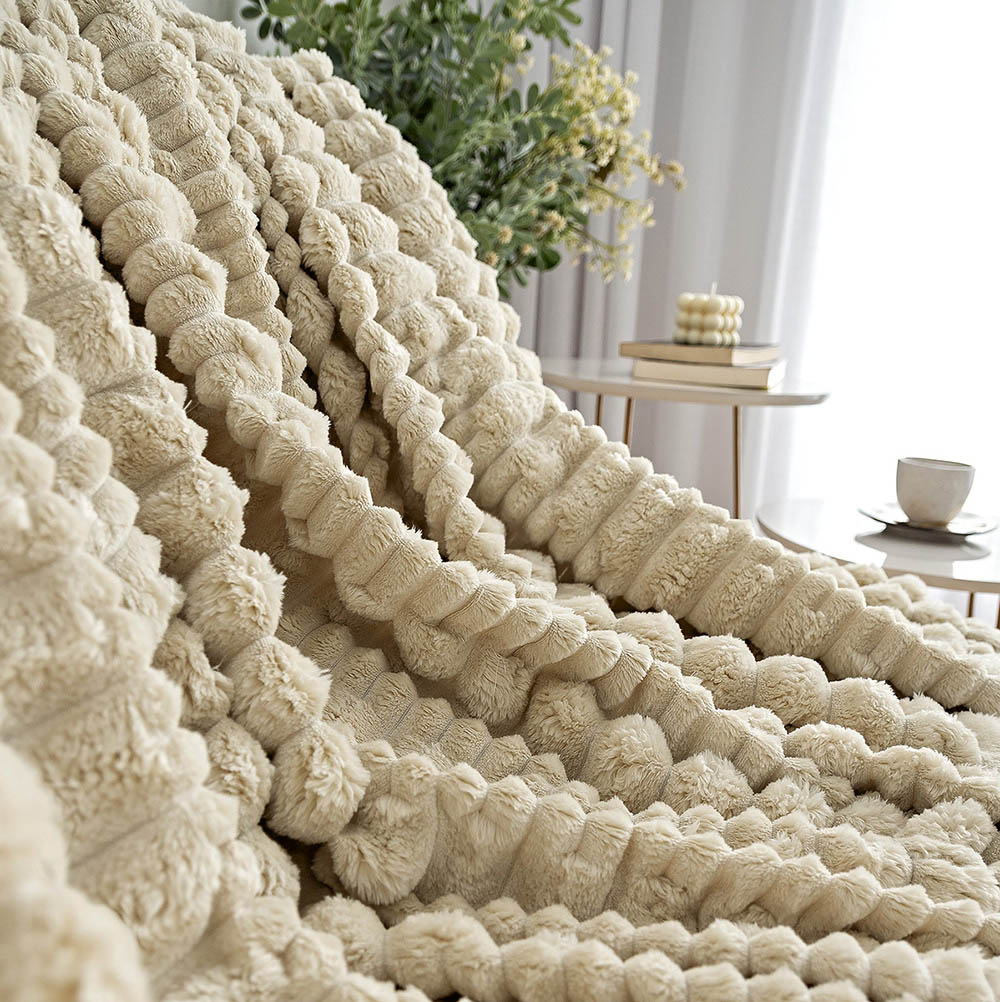 Cobertor Coberta Polar Queen 2,40x2,20 Manta Ultrasoft Alto Relevo Extra Macia Almond Bege