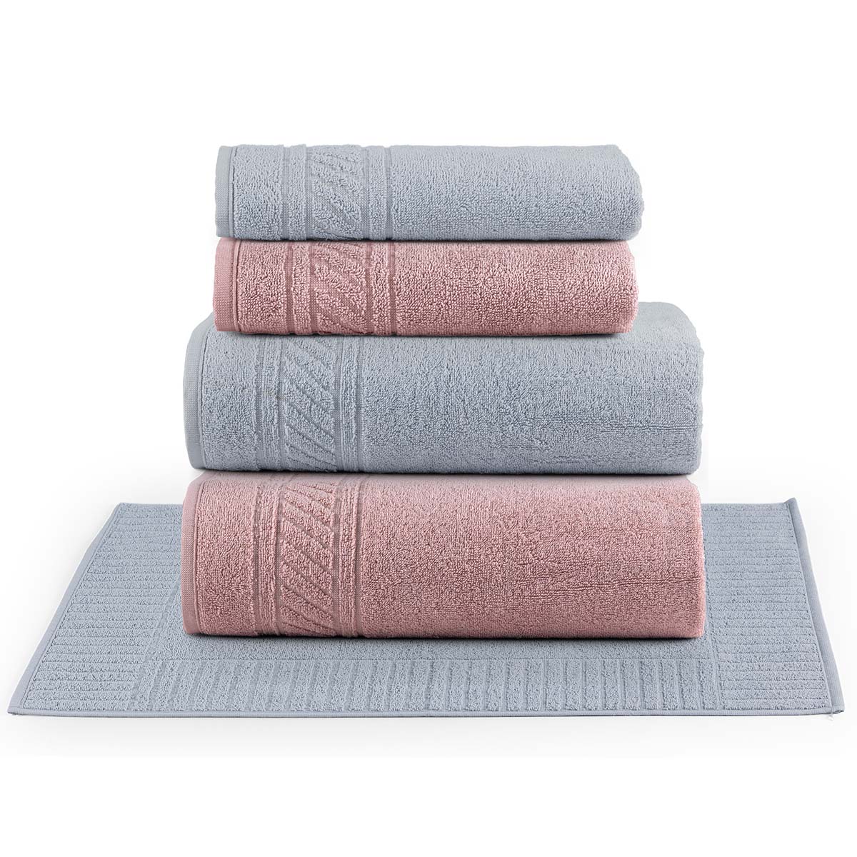 Jogo de Banho Lummi Toalhas Macias 100% Algodão Fio Penteado 5 Peças Rosa e Cinza