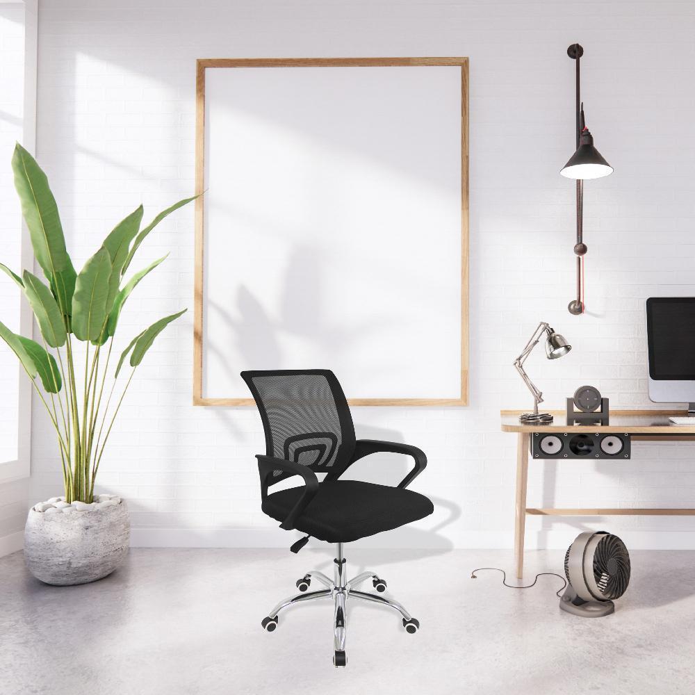 Cadeira Giratória Escritório Arco PretaA Cadeira Giratória Escritório Arco Preta é a escolha perfeita para quem busca conforto e estilo no ambiente de trabalho. Com um design moderno e sofisticado, esta cadeira não só atende às necessidades de ergonomia, mas também eleva a estética do seu escritório ou home office, permitindo que você trabalhe com eficiência e elegância.Feita com um estofado em mesh respirável, a Cadeira Arco promove ventilação e conforto durante longas horas de uso. Seu mecanismo giratório a torna extremamente versátil, permitindo fácil movimentação e acesso a diferentes áreas do seu espaço de trabalho. Além disso, possui regulagem de altura para se adaptar à sua mesa e garantir uma postura correta.Principais Características: • Design moderno e atraente que se adapta a qualquer ambiente • Estofamento em mesh que proporciona conforto e ventilação • Mecanismo giratório para fácil movimentação • Regulagem de altura para adaptações personalizadas • Base robusta com rodízios para mobilidade suave • Ideal para home office ou ambiente corporativoEspecificações Técnicas: • Dimensões: (informar dimensões específicas) • Materiais: Estrutura em plástico e metal, revestimento em tecido mesh • Cor: Preto • Capacidade de peso: (informar capacidade de peso) • Garantia do Fornecedor: 3 mesesA Cadeira Giratória Escritório Arco Preta é a combinação ideal de design contemporâneo e funcionalidade, fazendo dela uma adição indispensável para quem busca melhorar sua produtividade sem abrir mão do conforto. Transforme seu espaço de trabalho com essa peça elegante e prática!Transforme seu espaço de trabalho com a Cadeira Giratória Escritório Arco Preta. Estilo moderno, conforto em mesh respirável e regulagem de altura a tornam perfeita para longas horas. Ideal para home office ou escritório. Garanta já a sua e trabalhe com elegância!