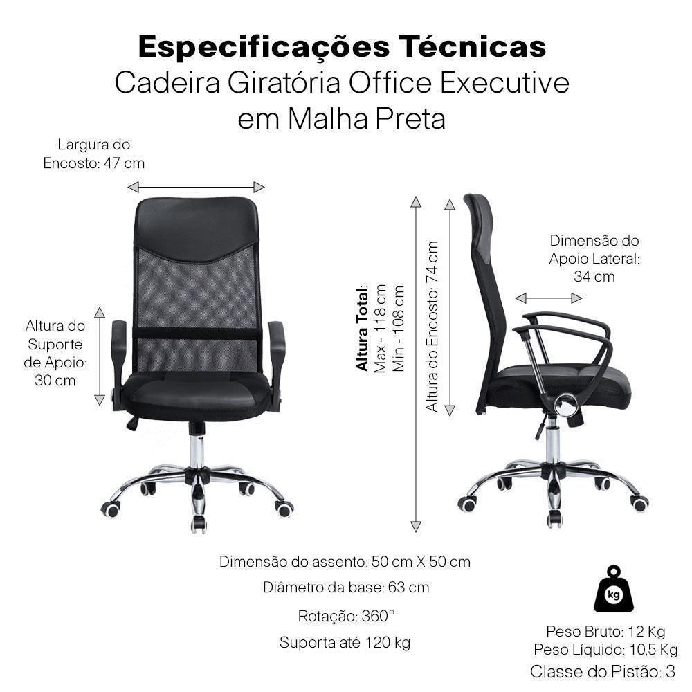 Cadeira Giratoria Office Executive Em Malha Preta