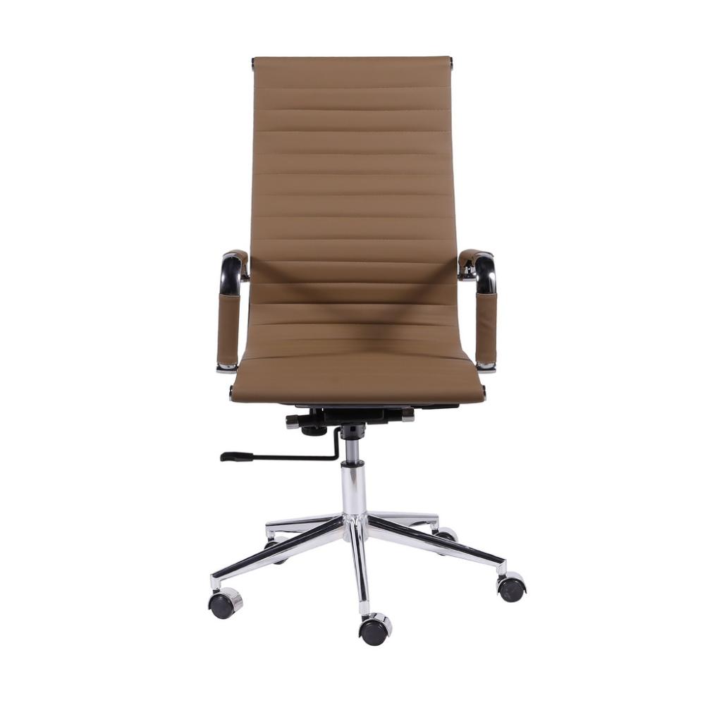 A Cadeira Presidente Eames é um clássico do design, suas características estão voltadas para curvatura da lombar proporcionando um maior conforto para suas horas de trabalho.A Cadeira Presidente Eames possue mecanismo relax e travamento, cotam com rodízio anti-risco e regulagem de altura.Ela é uma ótima escolha para sala de reunião ou seu home office! Com certeza o design e chame dessa cadeira será o destaque do seu ambiente!DESCRIÇÃO TÉCNICAMaterial: Couro Ecológico, Metal e Nylon.Acabamento: Couro EcológicoBase e braços: CromadoAssento e encosto com mecanismo relax e travamento.Rodízio anti-riscoAltura do assento até o chão: 49 à 55cmDimensões (LxPxA): 61 x 48 x 106 à 114 cmPeso: 15 KgPeso Máximo Suportado: 120 Kg